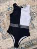 Black And White Patchwork Monokini Bikini One Pieces With Zipper JKP6012