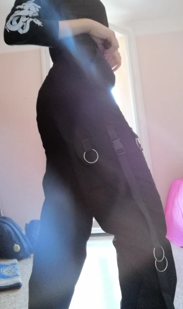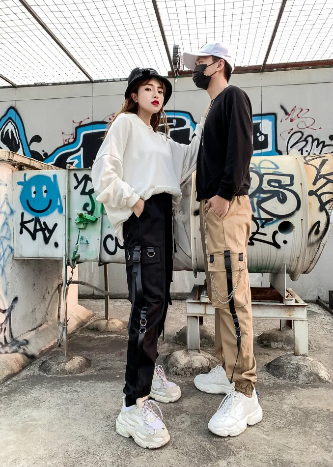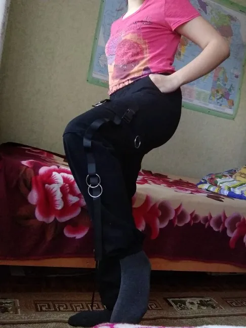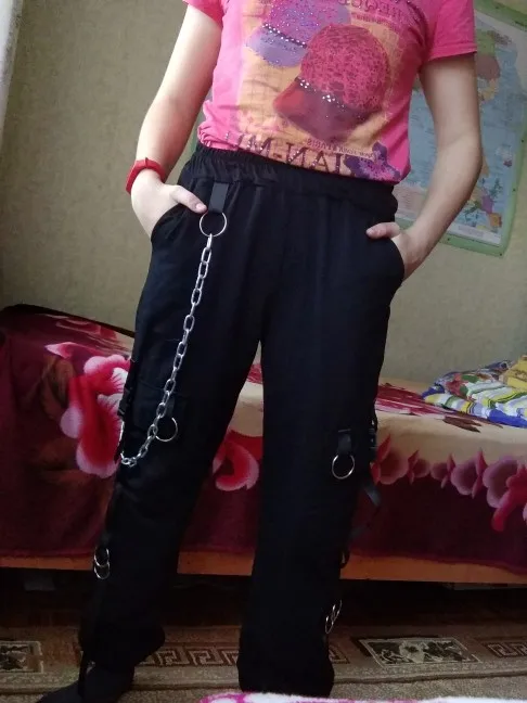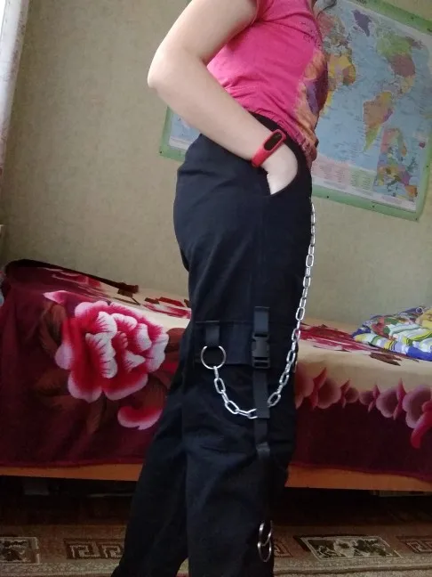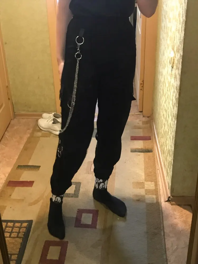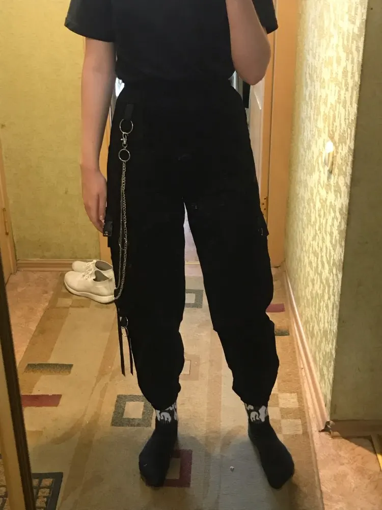 Home / Fashion / Pants / Black Harem Pants Streetwear Cargo Pants Harajuku Chain Pockets Ankle Trousers High Waist Chain Hip-hop Punk