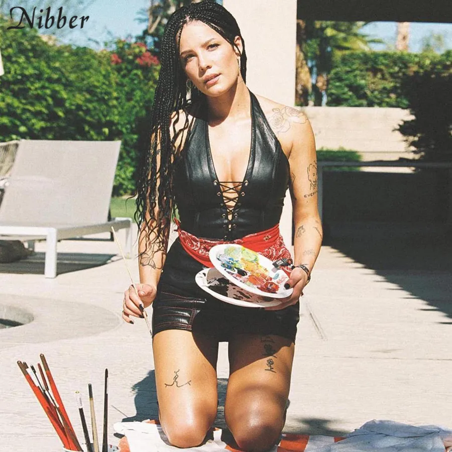Black Leather Hollwo Crop Tops Slim Soft Leather Tank Tops Punk Festival Outfits JKP3850