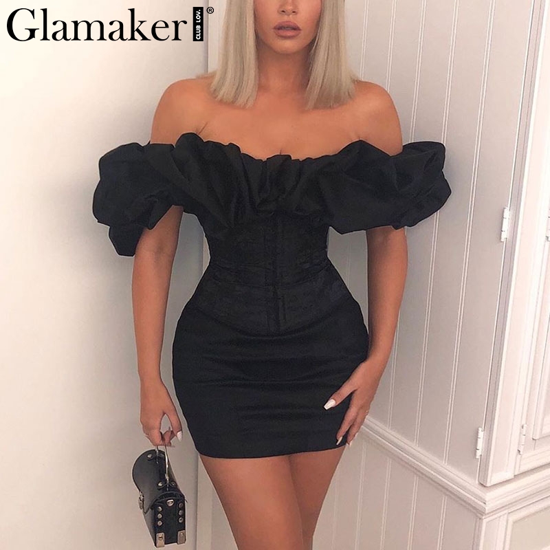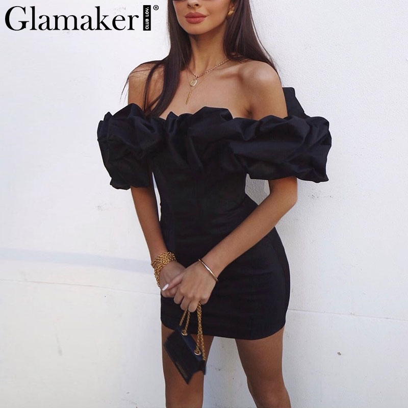 Black Ruffle Off Shoulder Dress Bodycon Party Dress Outfit JKP3895