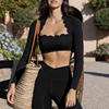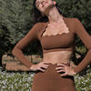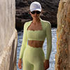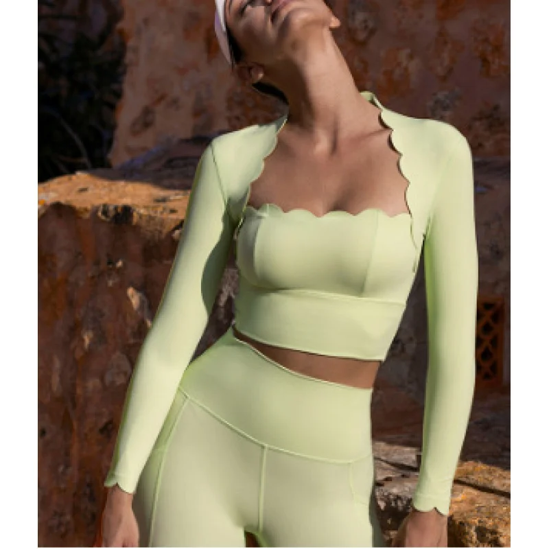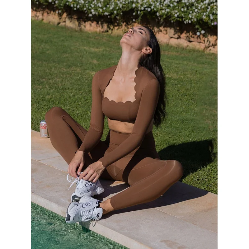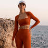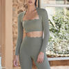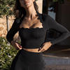Black Square Neck Yoga Long Sleeve Compression Top And High Elastic Workout Leggings JKP7350