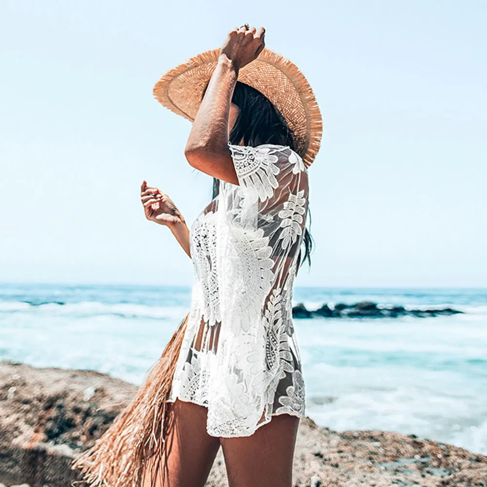 Black Sunflower Crochet Bikini Cover Up Swimsuit Beach Dress