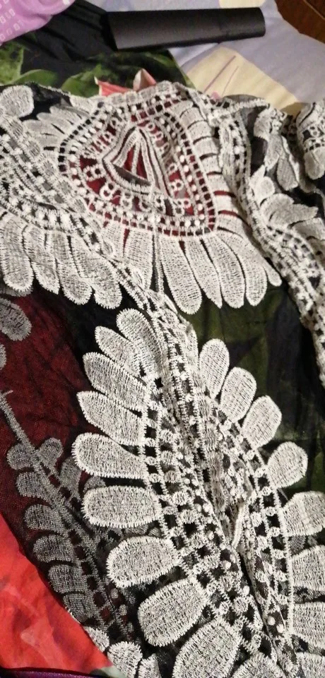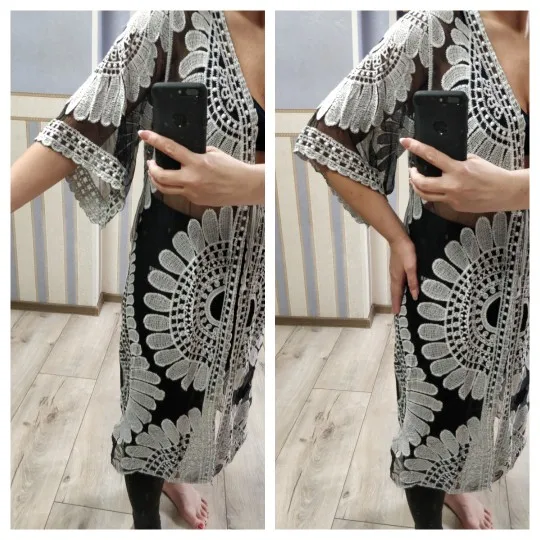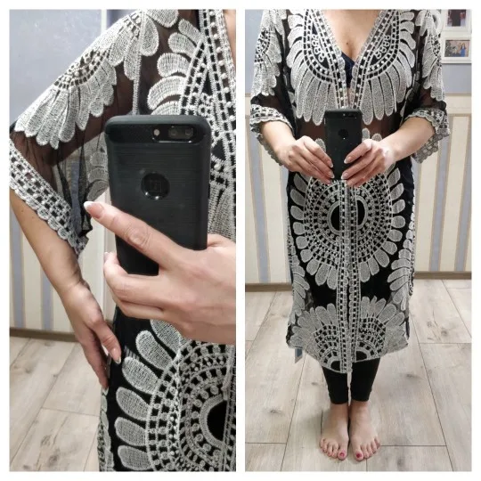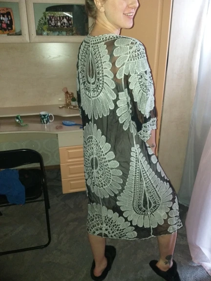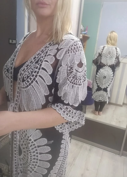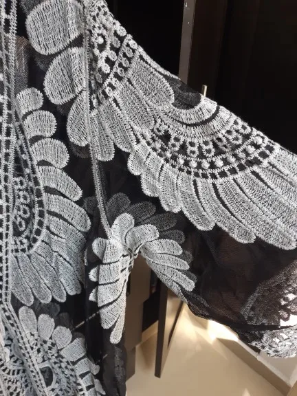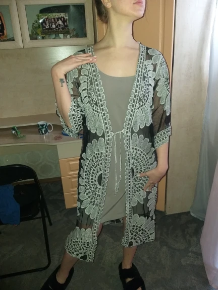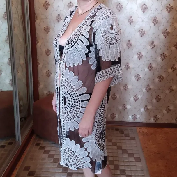 Very beautiful and good quality summer wrap. I recommend to everyone. Very solidly made. symmetry, beautiful three-dimensional embroidery. Very satisfied. My height is 168cm , 95-90-105cm . Delivery is extremely fast, 3 days !!! I was amazed!