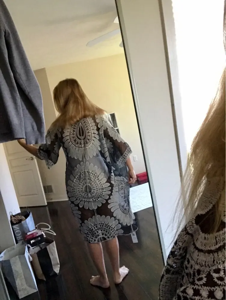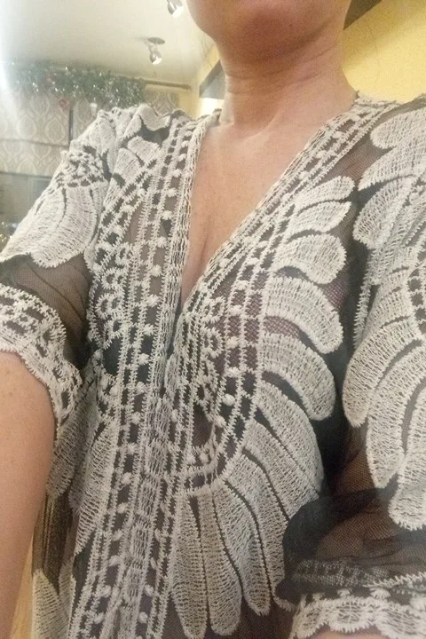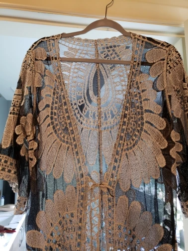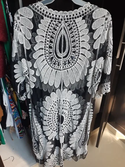Wonderful tunic, fast delivery, conforms to the description. Even fit 50- 52, I have 48, sits freely. For the beach is super. Recommend it. Ordered 29.02.2020 arrived on March 17.