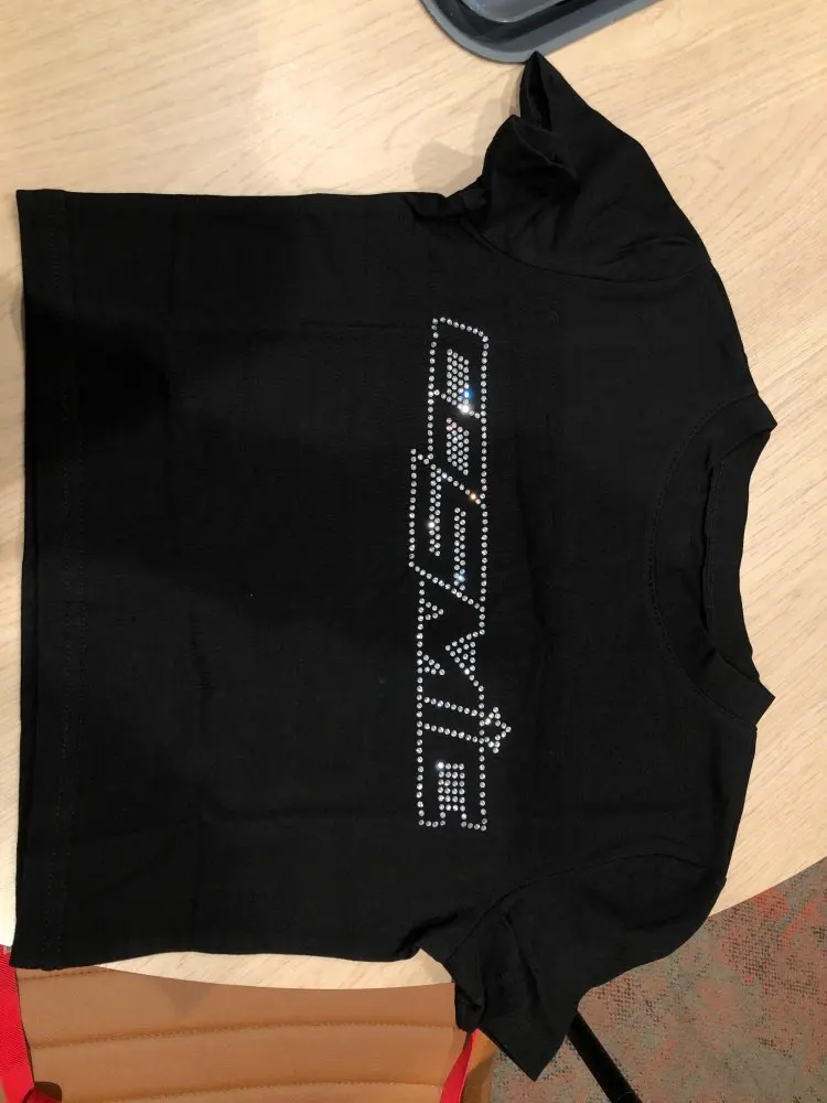 It is what you expect. The shirt is very nice and none of the rhinestones fell off or anything like that. I got a L because I have a bigger bust. If you are in between sizes, I recommend taking the bigger size. Shipping was fast. Quality is good.