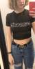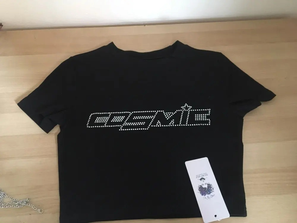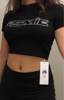Black T Shirts Letter Cosmic Rhinestone Cropped Streetwear Fashion Top Tee JKP3837