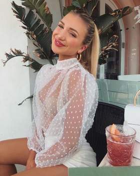 Summer Blouse Polka Dot Sheer Mesh Puff Long Sleeve JKP5956