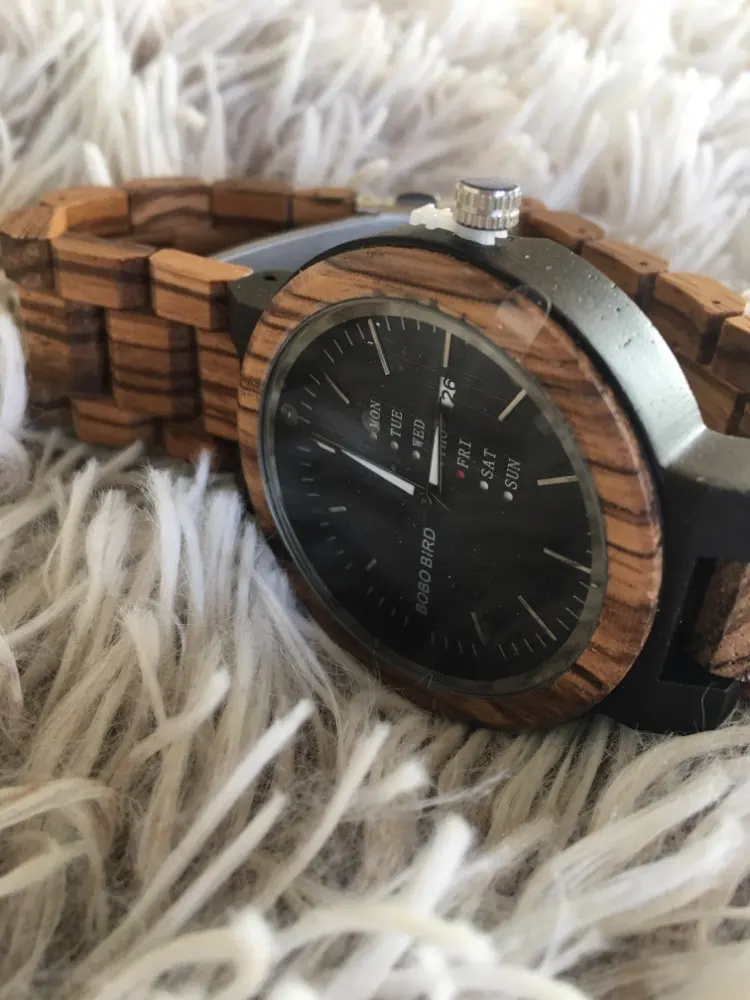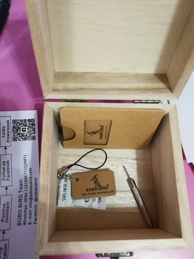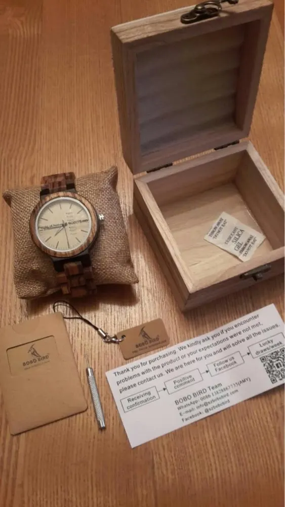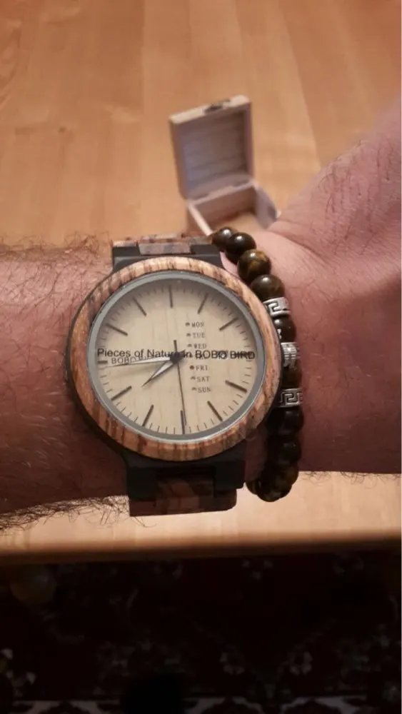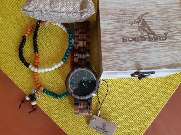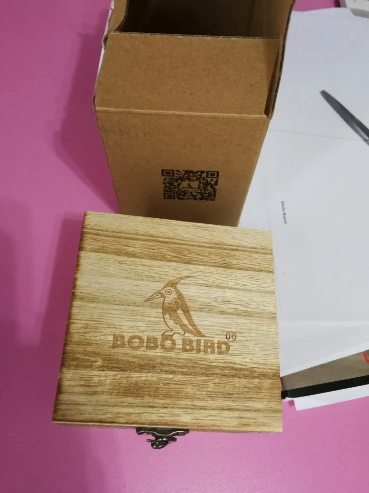This watch is really good quality, the store also sent me the complete kit! Presents the "Bobo bird" logo, it is 100% original! I am very happy with the quality - price ratio. I recommend this Seller...