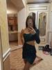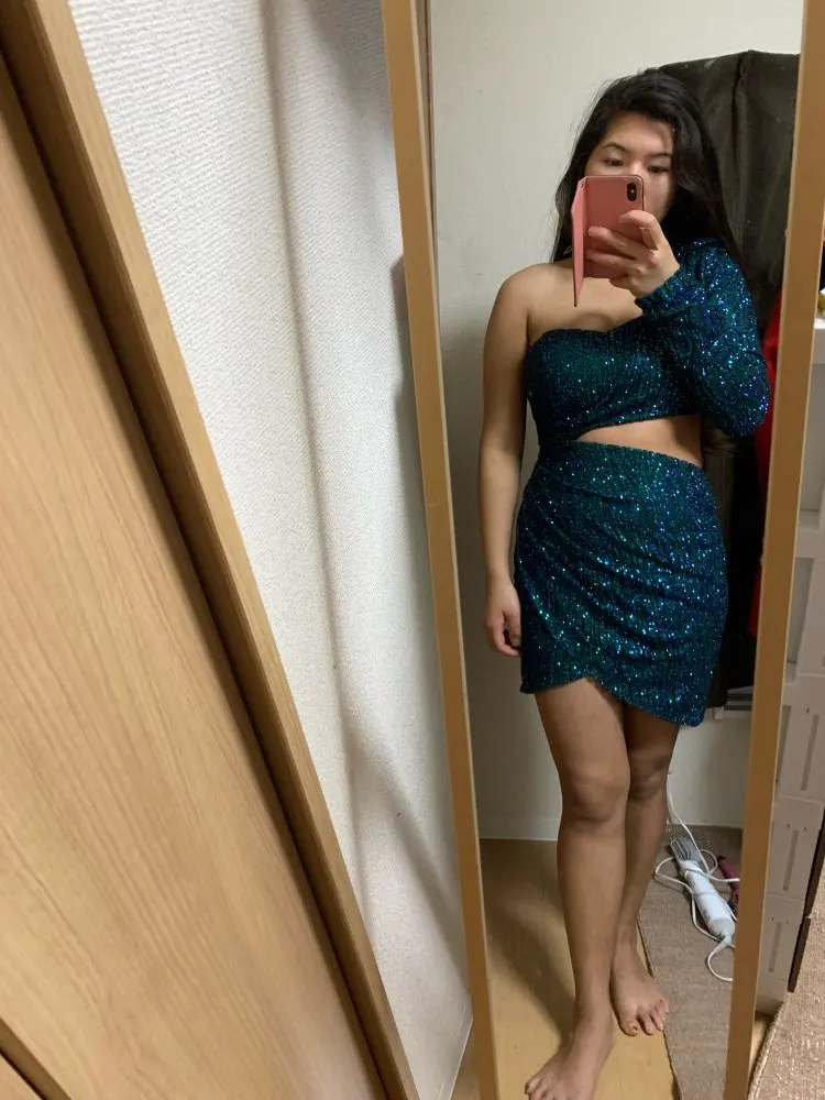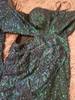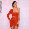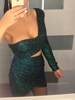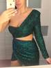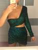 Bodycon Party Dress Green Cut Out Single Sleeve Glitter