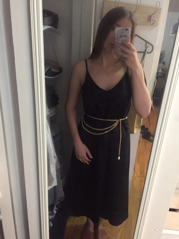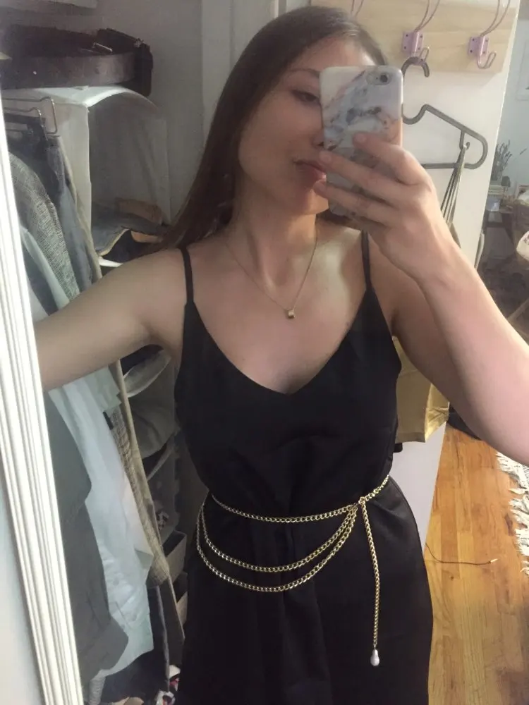 The chain is pretty short so maybe not for plus size women. Only fits me in the waist so keep that in mind. But it is very cute!