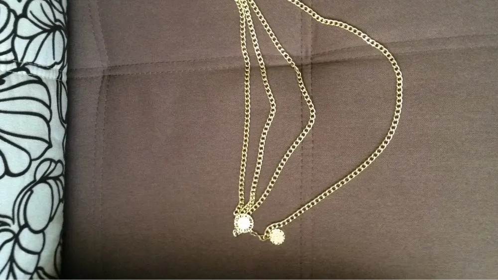 Exactly as advertised! Came to New York in 22 days. I changed the style just a bit (removed the coins, attached a weird shape fake pearl to the end of the chain) but overall I’m happy with the purchase and it’s 100% what I expected