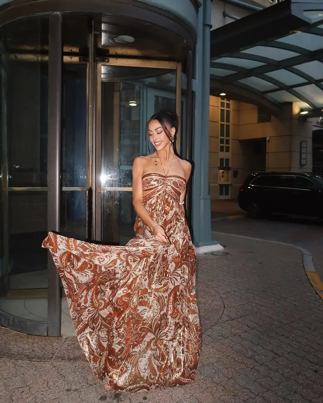 Step into effortless elegance with this 2026 bohemian-inspired strapless maxi dress, featuring a flowing silhouette and rich paisley print. Designed with a flattering fitted bust and soft drape, this dress captures modern boho luxury with a vintage touch. Perfect for evening outings, city strolls, vacations, summer parties, or romantic dinners, it moves beautifully with every step. Style with minimal jewelry and heels or sandals for a timeless, feminine look.