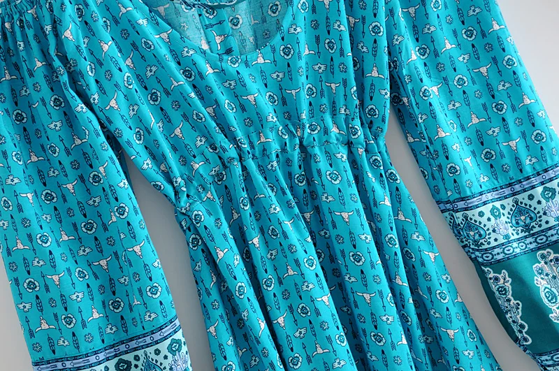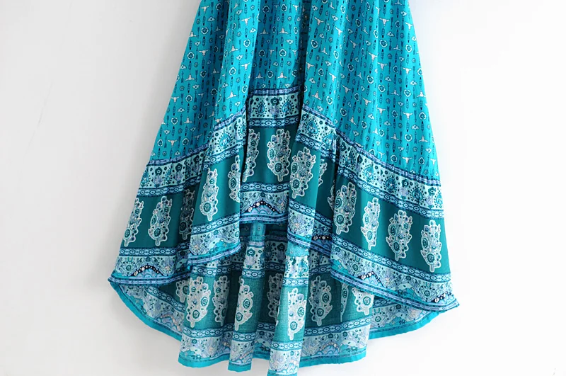 FREE SHIPPING Boho Inspired high-low hem ruffle dress women off shoulder round neck tied waist summer dress 3/4 sleeve floral print boho dress JKP2500