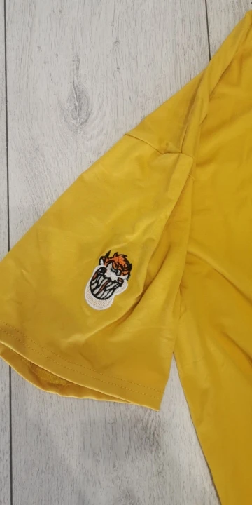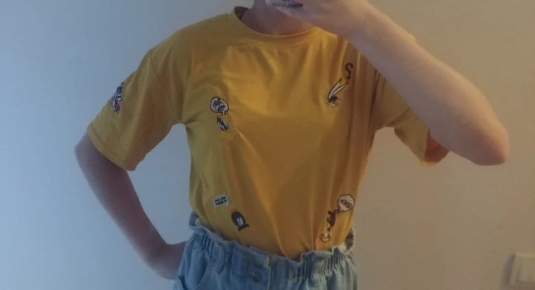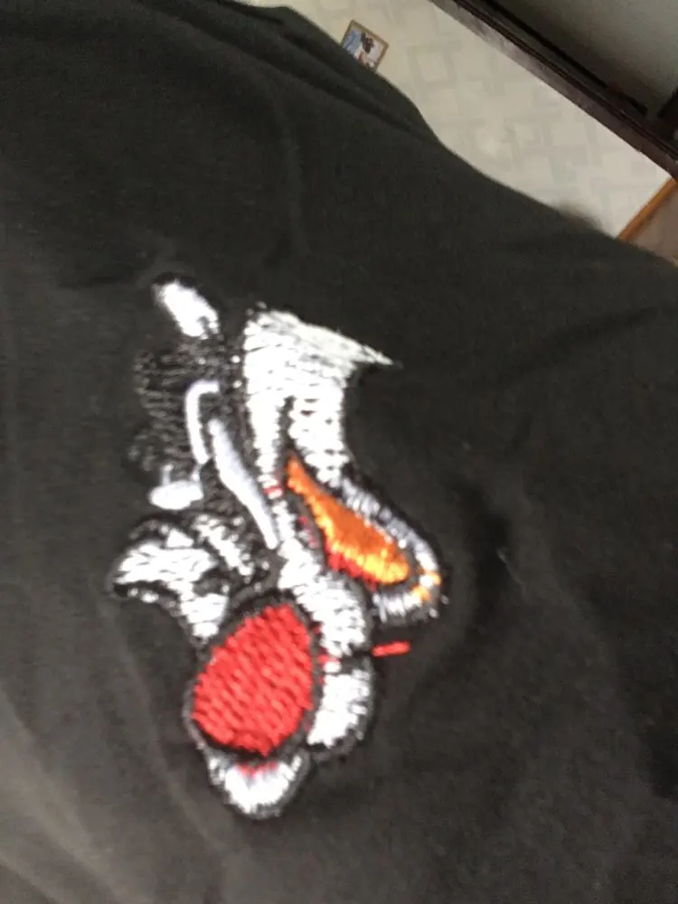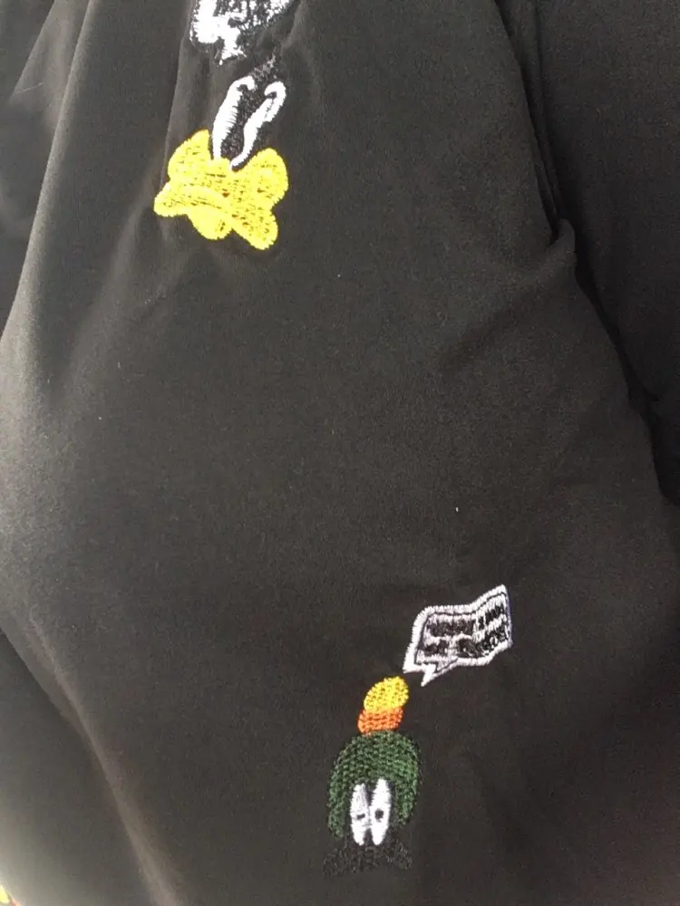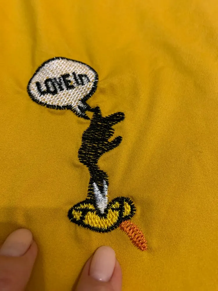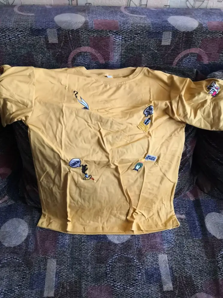 The T-shirt is beautiful, all the cartoons are stitched. The fabric is pleasant to the touch but not HB.