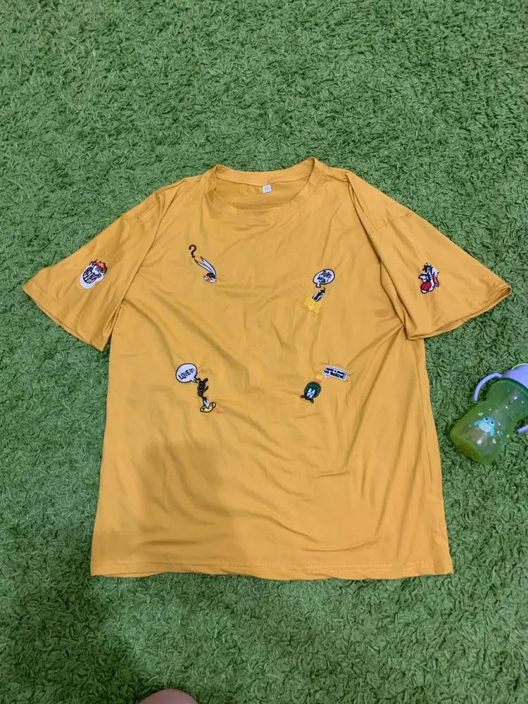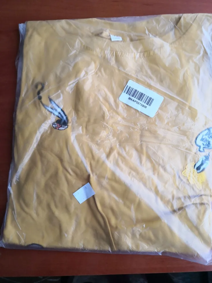 The T-shirt is very beautiful✨✨✨Bold, bright, clear pattern. I ordered XXL to sit freely and looked beautiful. There is some factory smell of synthetic. The only fabric is going on embroidery. But if you do not stretch the T-shirt, and wear freely, you will not notice this. I'm very happy.✨✨✨✨Thank you✨✨✨