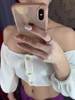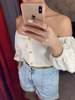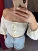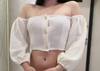 BUTTON UP OFF SHOULDER TANK TOP HALF SLEEVE SUMMER CASUAL SOLID COLOR CROP TOPS JKP3843