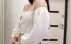 The fabric slightly shines through, but for someone it's even a plus. And a little tight elastic band on the sleeves, so if you have full or muscular hands, take more. With the size I flew, you need to take more on the chest 75c, so as not to crumble. And so very cute and feminine top.