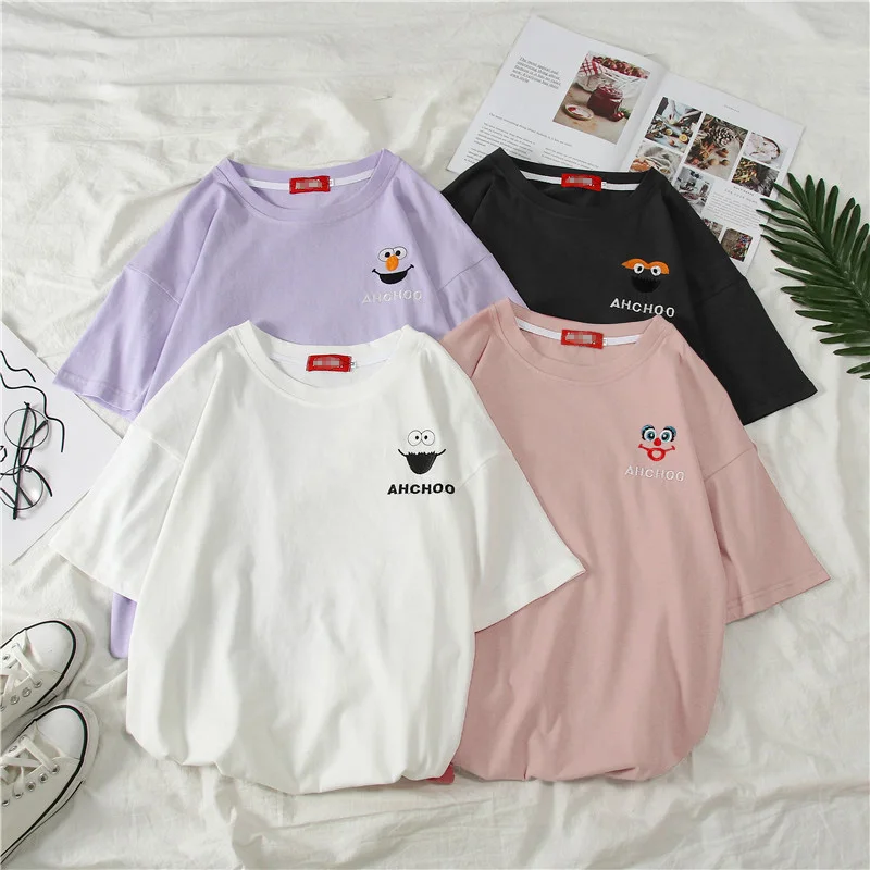 Home / T-shirts / Casual Harajuku Kawaii Cartoon Embroidery Korean Hip Hop T-Shirts