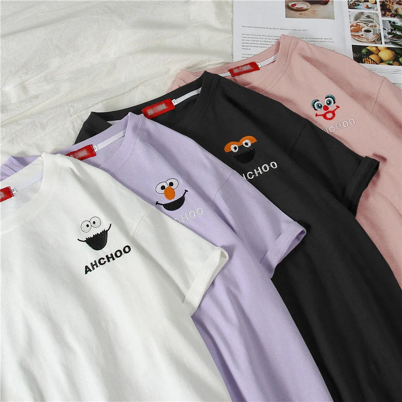 Casual Harajuku Kawaii Cartoon Embroidery Korean Hip Hop T-Shirts