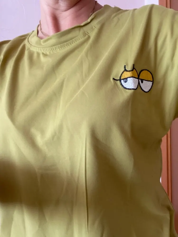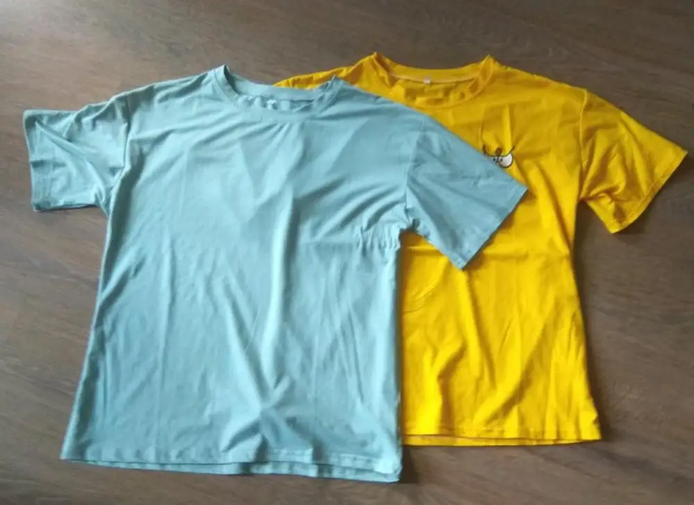 На 162см и примерно кг 60 заказывала XL, на мне футболки свободные, но не прямо супер оверсайз. Ткань отличная и приятная на ощупь, немного тянется. Вышивка на жёлтой футболке неплохая. После стирки футболки не полиняли и никак не изменились в качестве. Прошивка неплохая, но на поясе и рукавах внутри торчат нитки. Цвета очень приятные, выглядят стильно). Реалистично цвета выглядят на фото, но показаны детали.