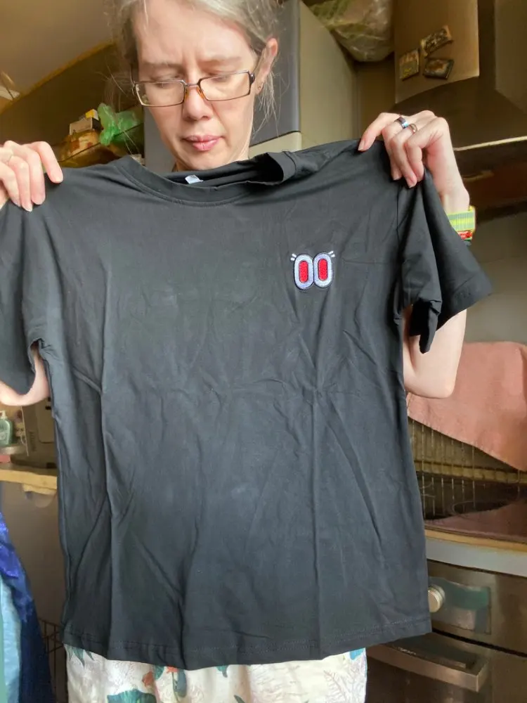 эта футболка просто . материал приятный к телу ооочень. нашивка качественная и сама футболка без торчащих нитей с ровным швом. в подарок продавец положил резинку. Пришла футболка немного позже но она стоила ожидания и потраченных денег.