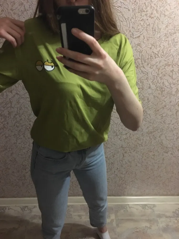 футболка норм,покупайте.Хотела сфоткать,но зеркало грязное мне лень.Поверьте на слово