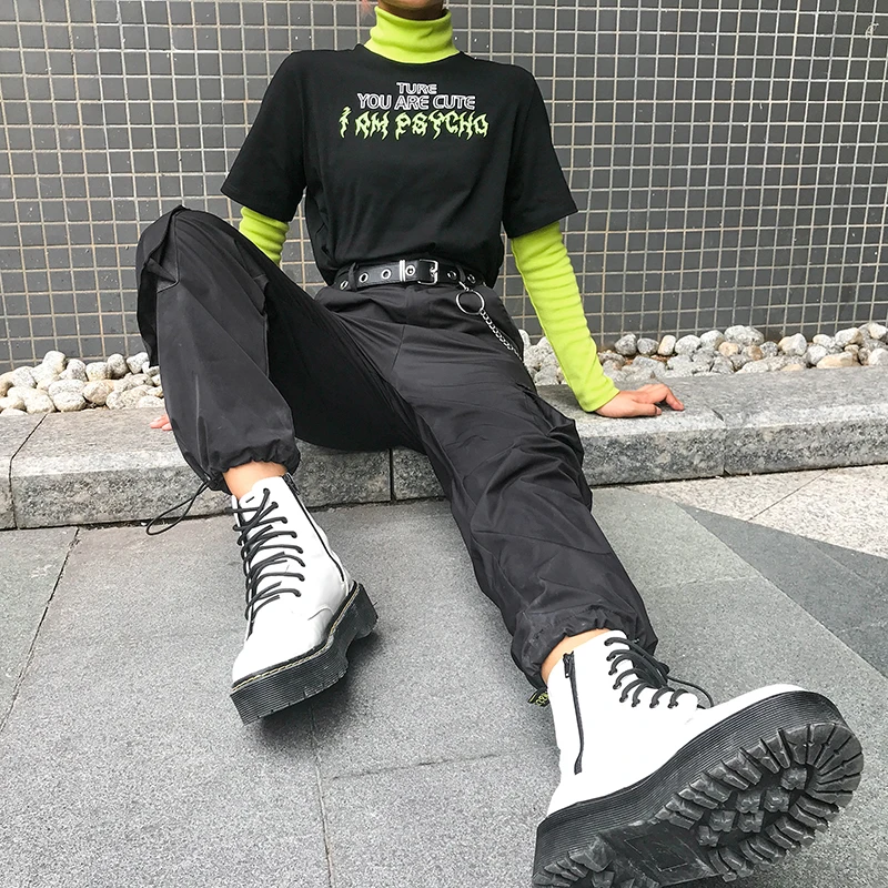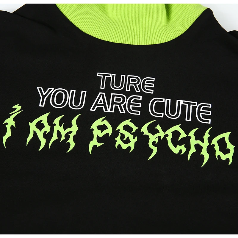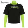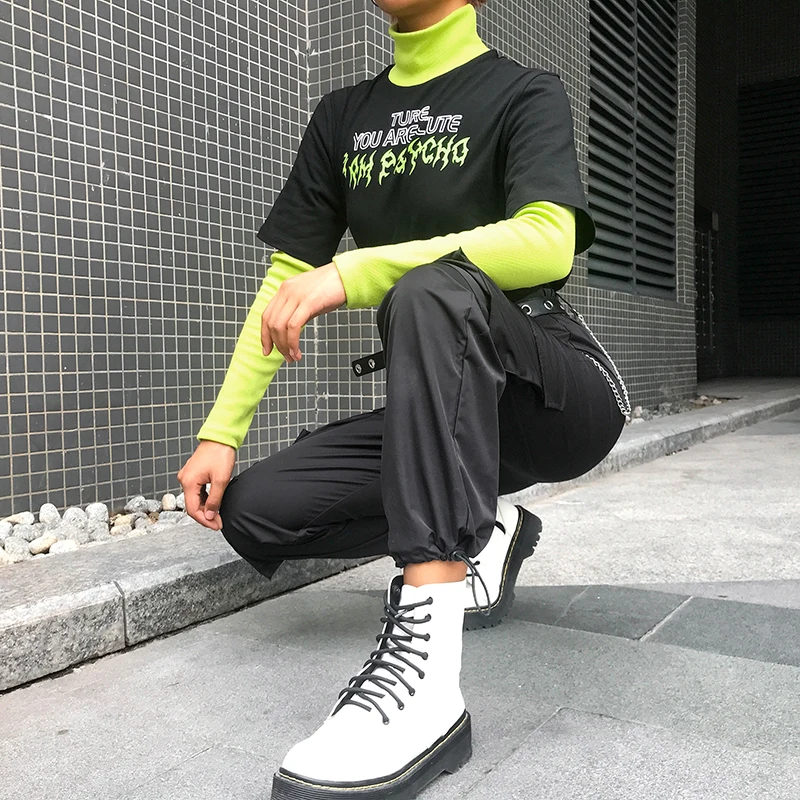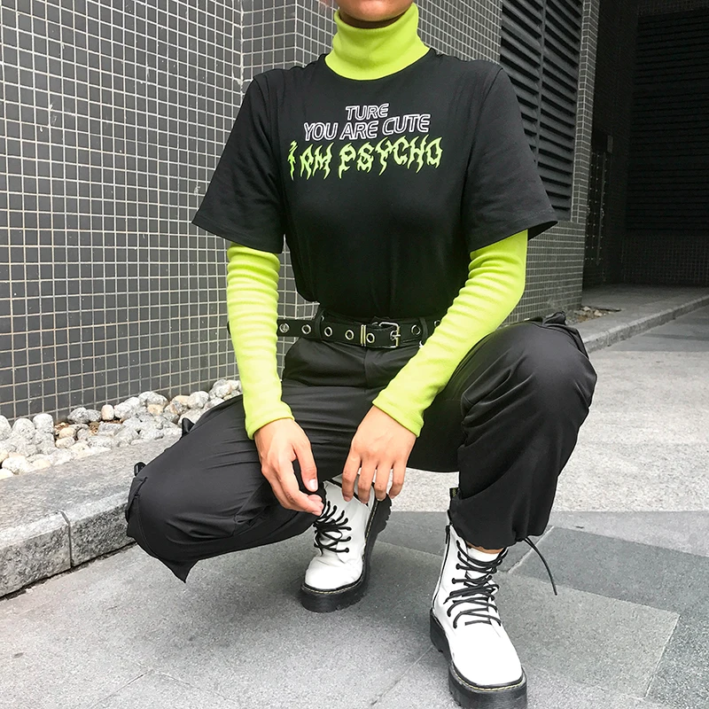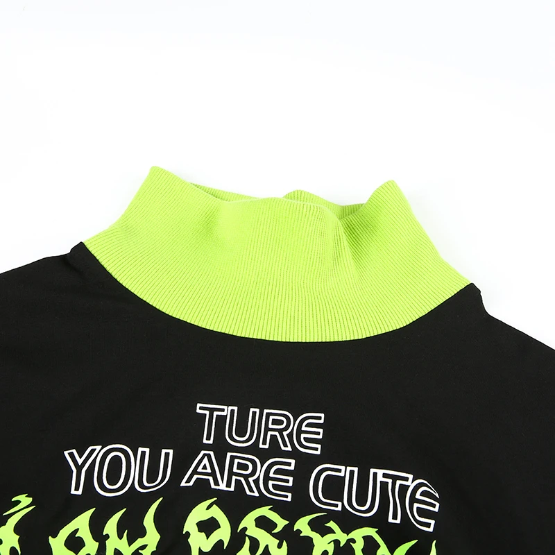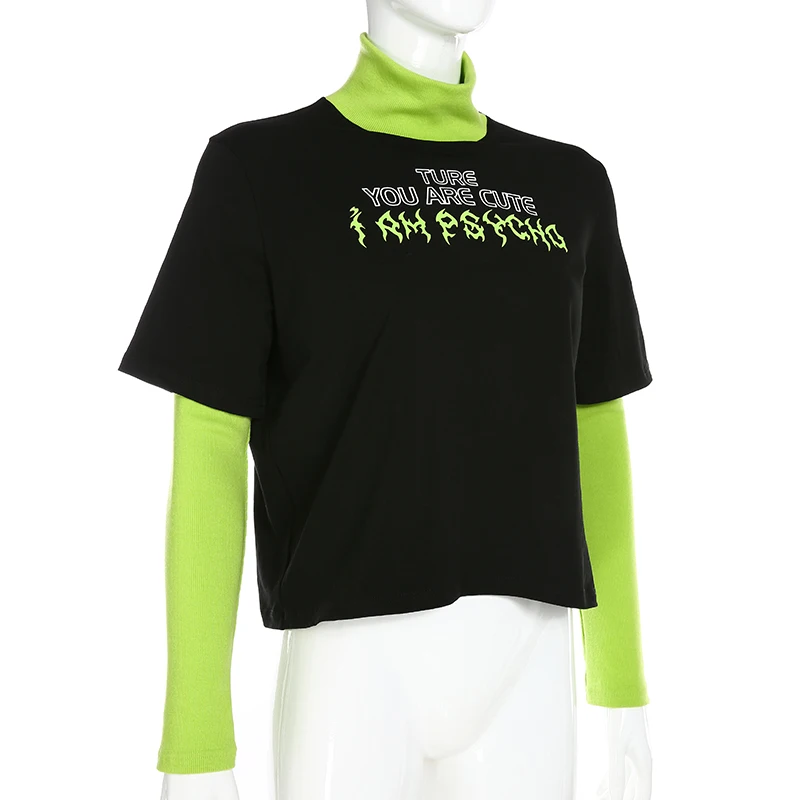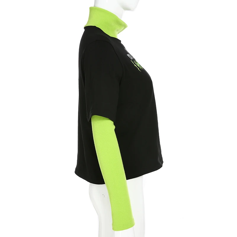 Casual Long Sleeve Black T Shirt Patchwork Mock Two-Piece Turtleneck Streetwear Outfit JKP3790