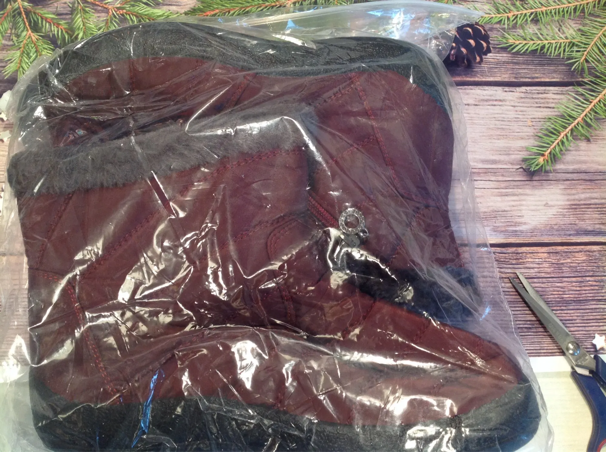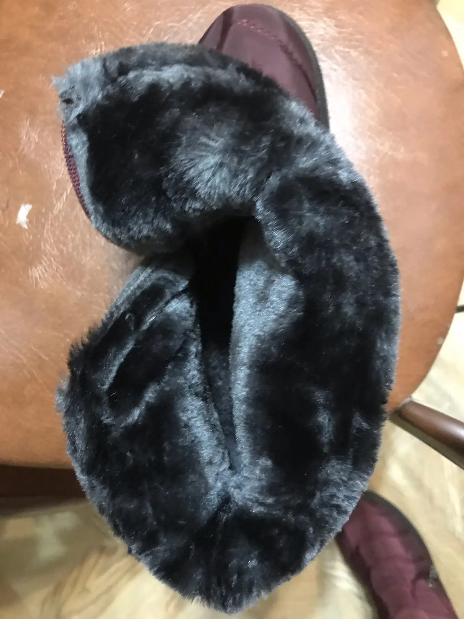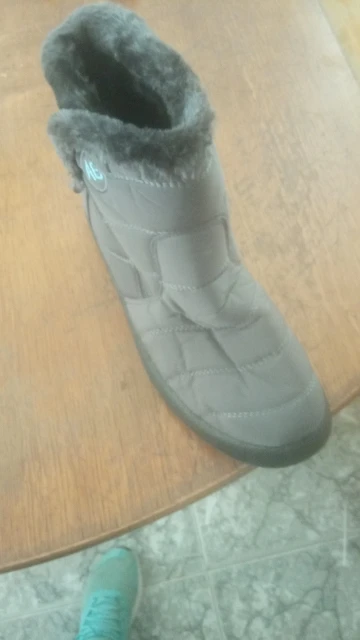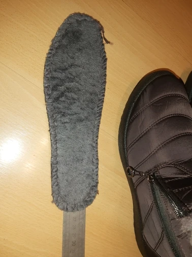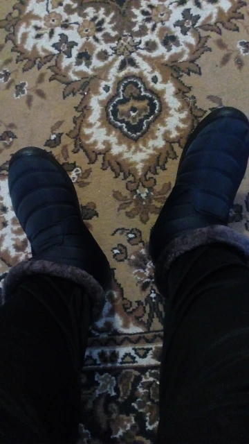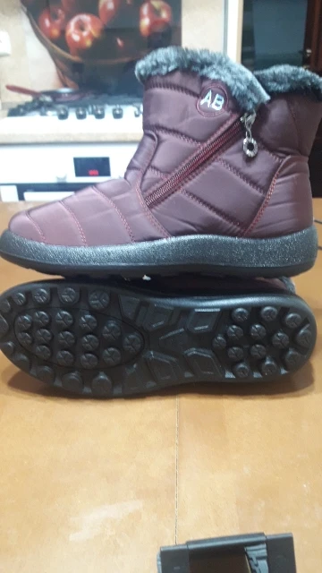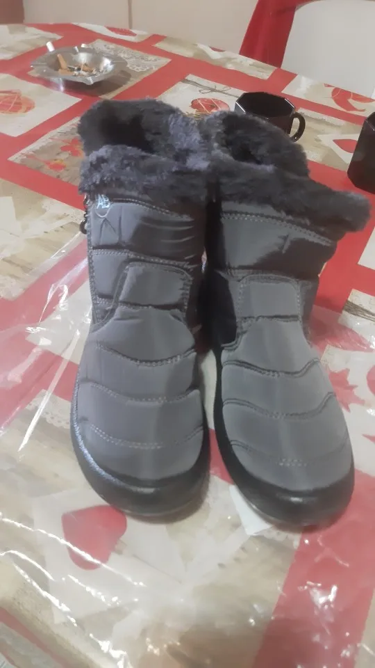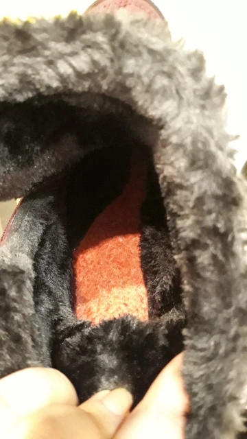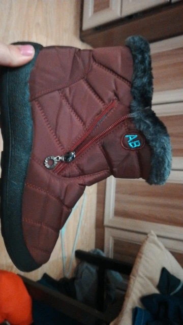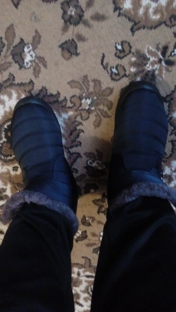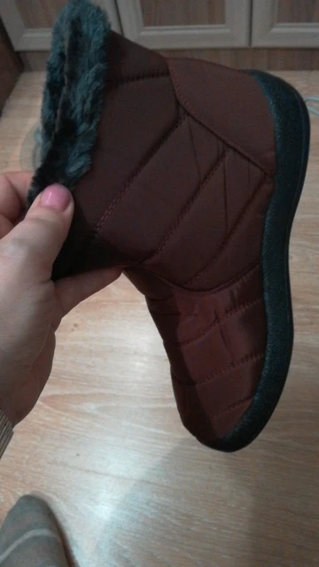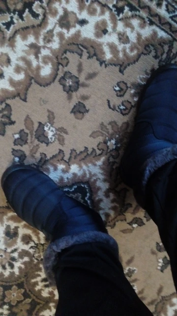 The goods received quickly, the goods correspond to the description for all 100%. Smooth firmware, nowhere does the threads stick out, the locks work well. Lungs on the leg are not felt. Fur is thick soft, the sole is elastic. With a good pattern from sliding. On the leg 38 size, the length of the foot is 24 cm, it came perfectly. This is the main thing. I have such like only men. Boots are warm, in the wind are not blown. I wear one thin sock. Even it can be hot. Seller recommend. Sent Same day payment.