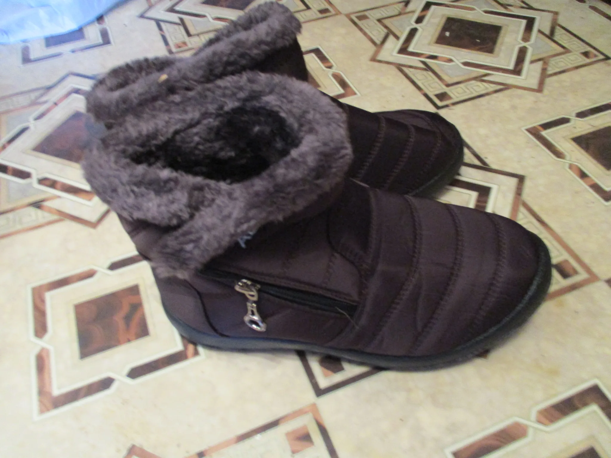 This is the second pair I have purchased from this store, this pair is for my mum, love these boots, warm fur lining throughout, beautiful detail on the zip, nice and water proof, very comfortable. The seller shipped the item quickly and received very quickly, well packaged, seller recommend, thank you