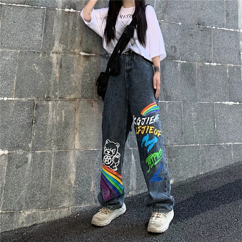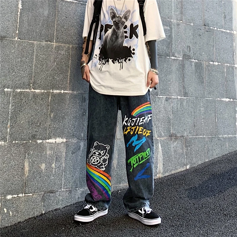 Casual Streetwear Cowboy Jeans Graffiti Print JKP4522