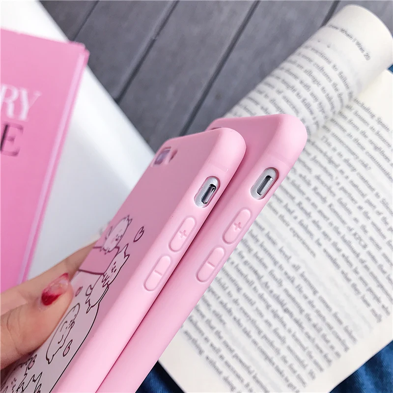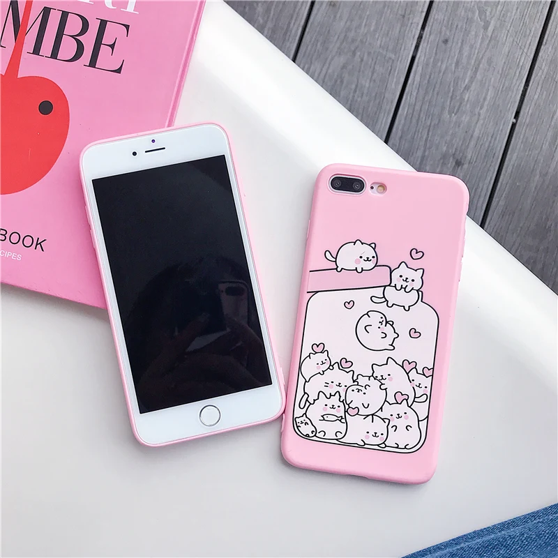 Cat Bottle Cartoon Matte Pink Cute Soft Silicone Cover For Iphone JKP4778