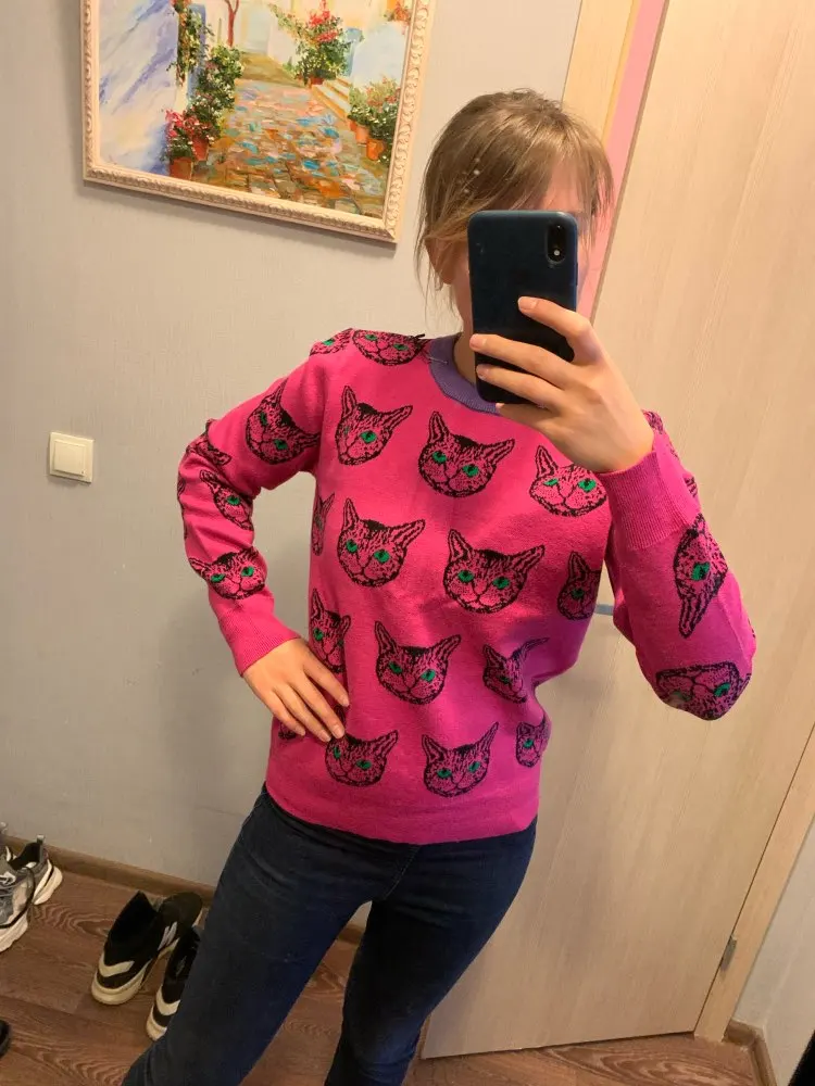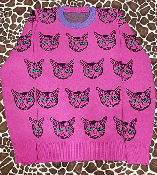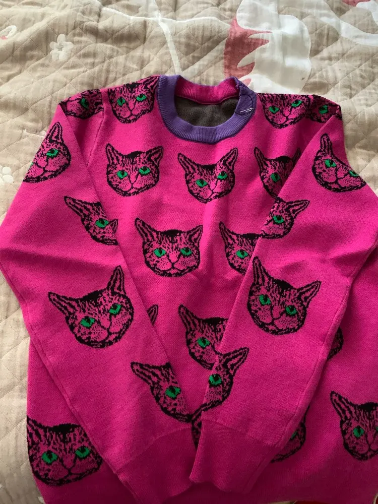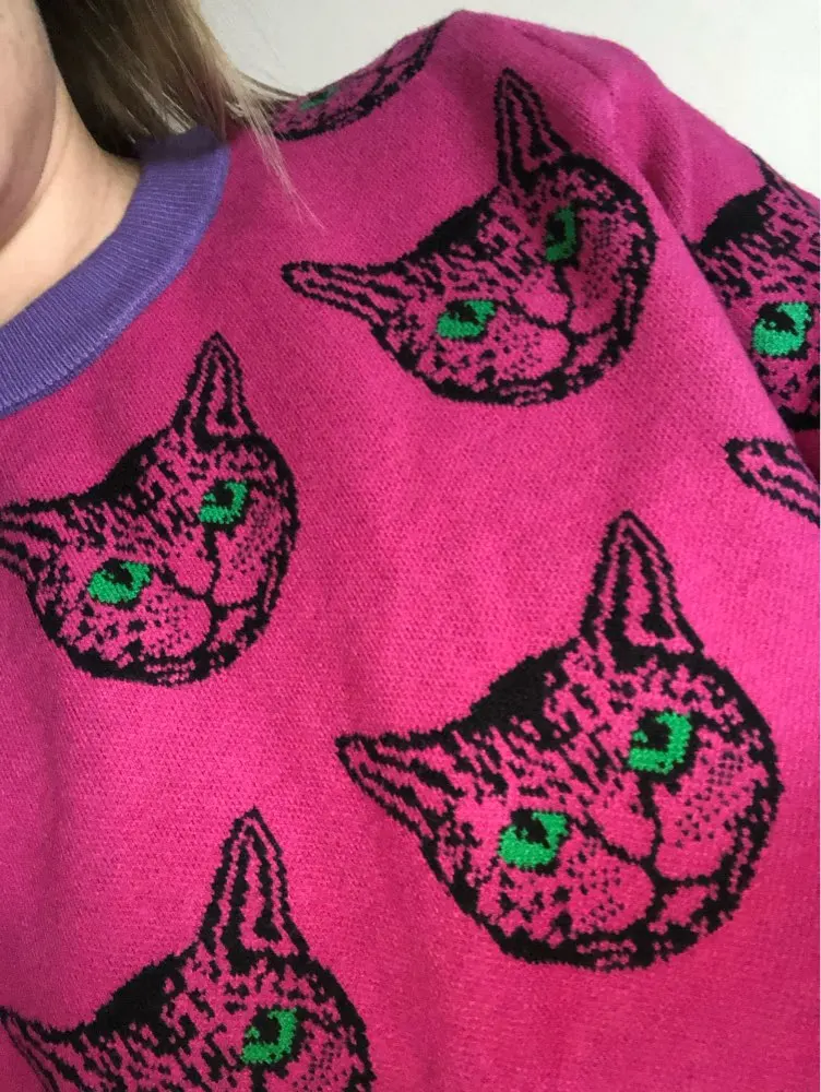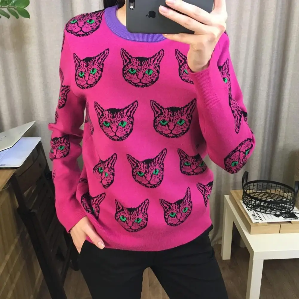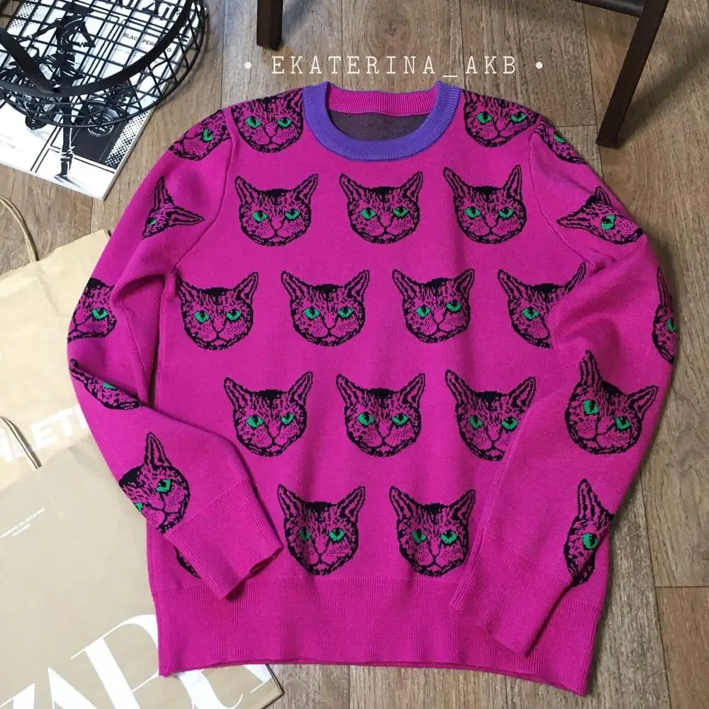 Cat Face Print Knitted Sweaters High Quality Autumn Winter Harajuku