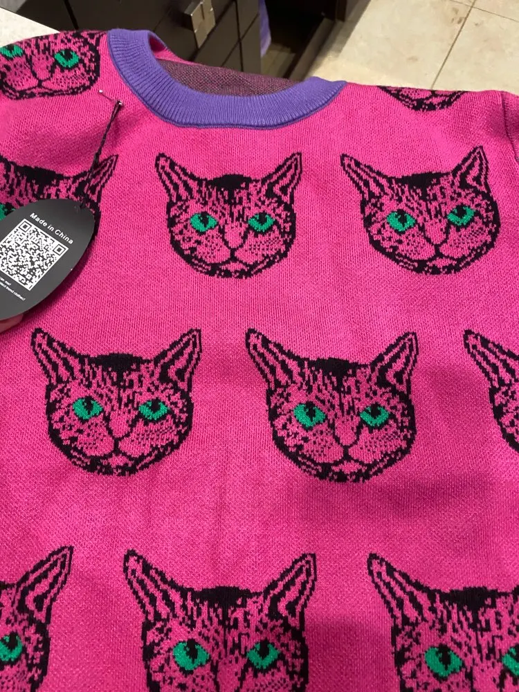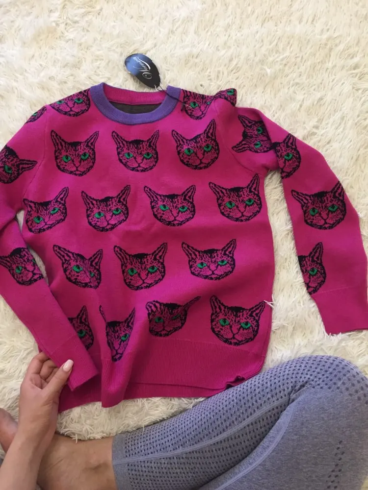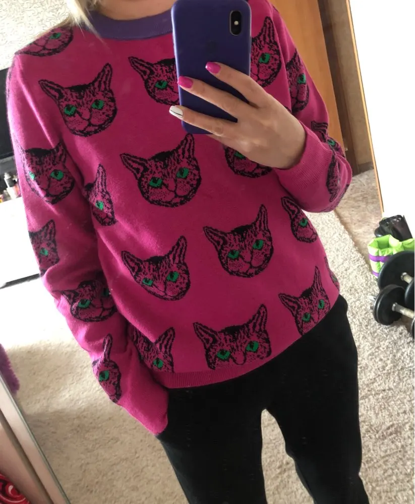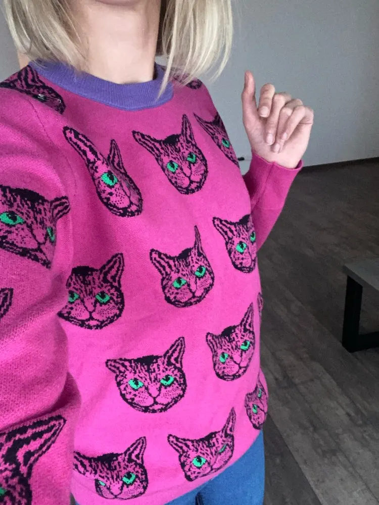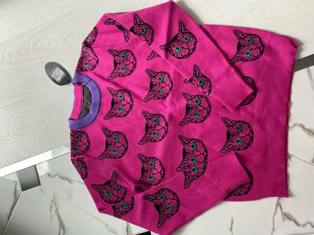 Cat Face Print Knitted Sweaters High Quality Autumn Winter Harajuku