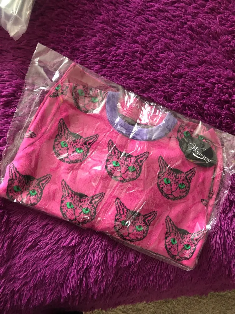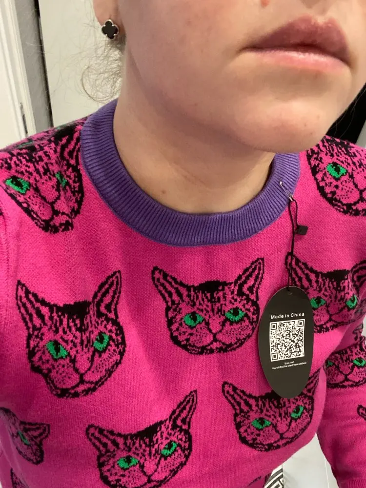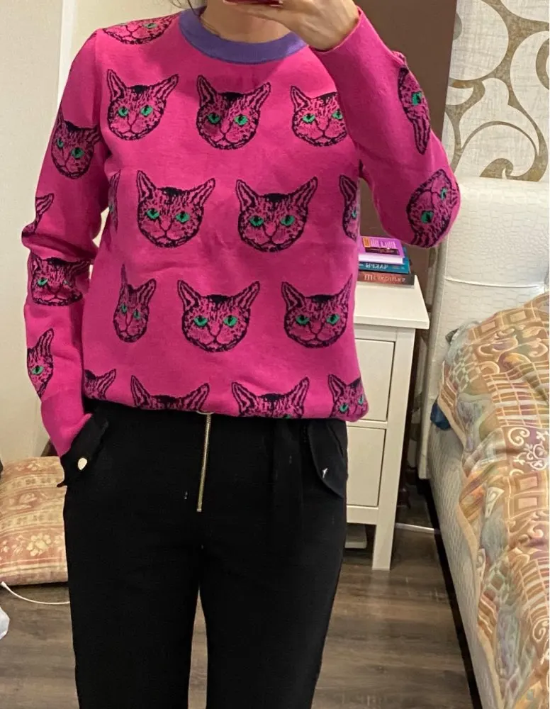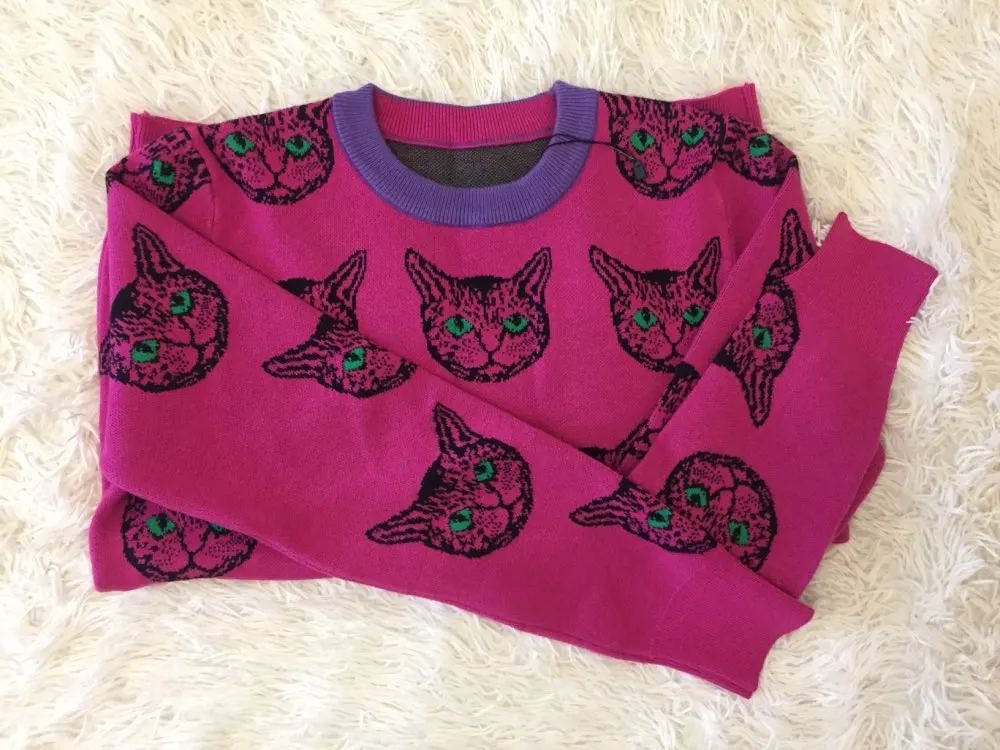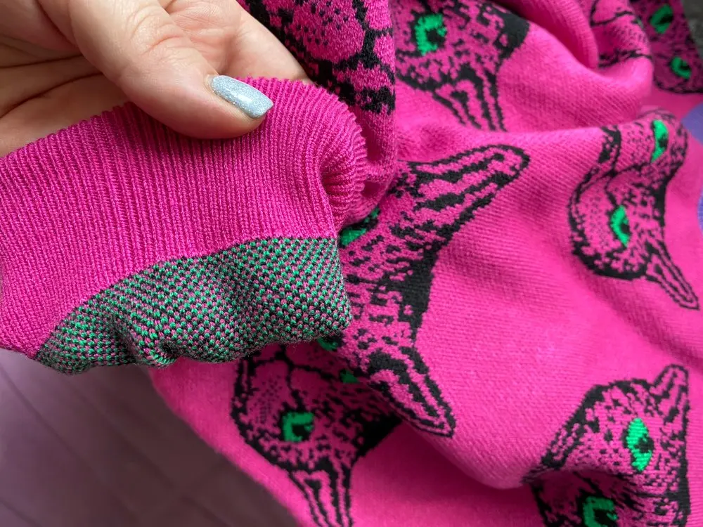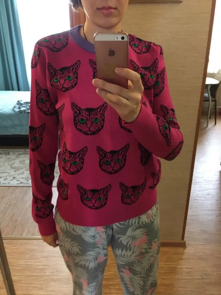 Cat Face Print Knitted Sweaters High Quality Autumn Winter Harajuku