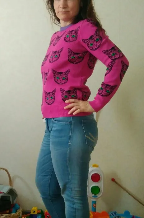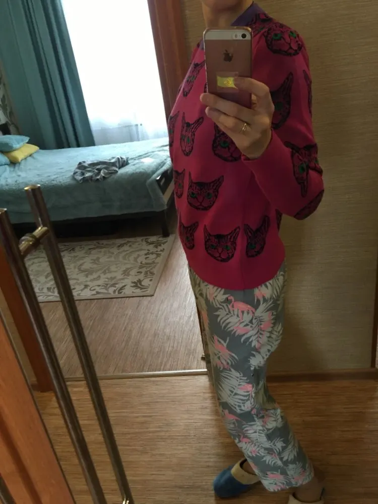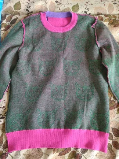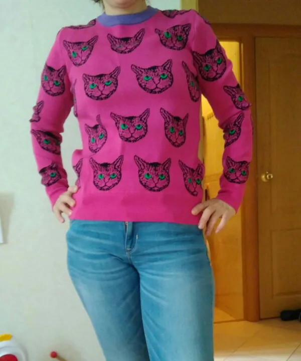 Surprisingly-it was very nice to get an order! Jumper does not look cheap: thick nice fabric, smooth seams, clear pattern. The size 44 took M-looks slightly oversized, easy fit. At the height of 162 the sleeves are a little long-I think up to 175 will be excellent.