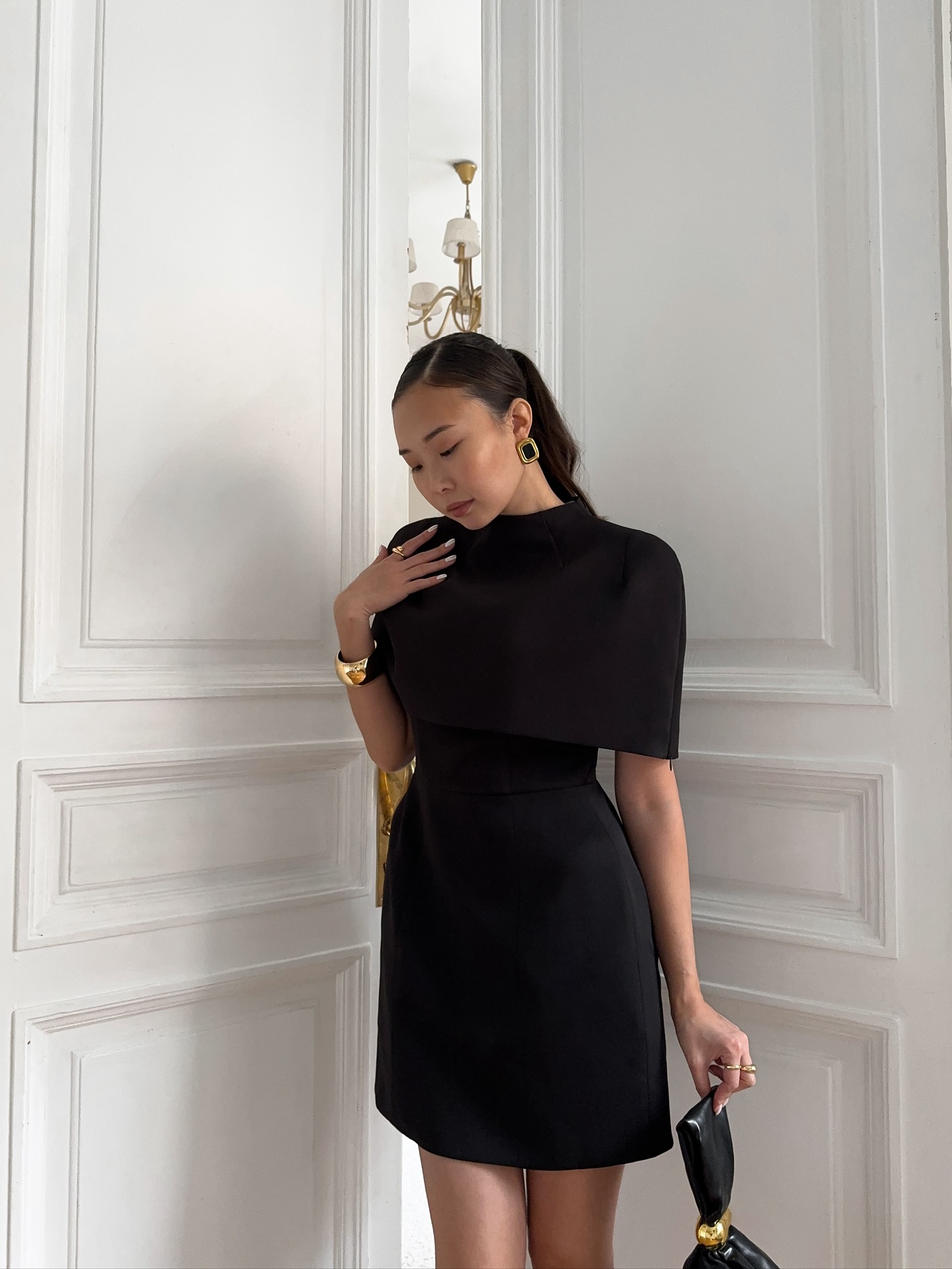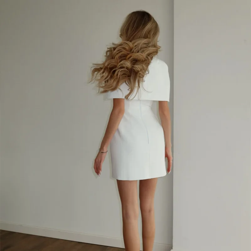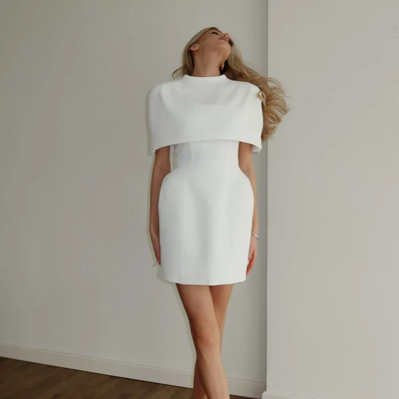 This white dress looks very stylish and attractive! The cape style design directly fills the aura, with a crisp but not stiff silhouette that looks great on the waist and hips when worn. The pure white color is clean and luxurious, and any simple necklace can add a delicate touch! I really like it.