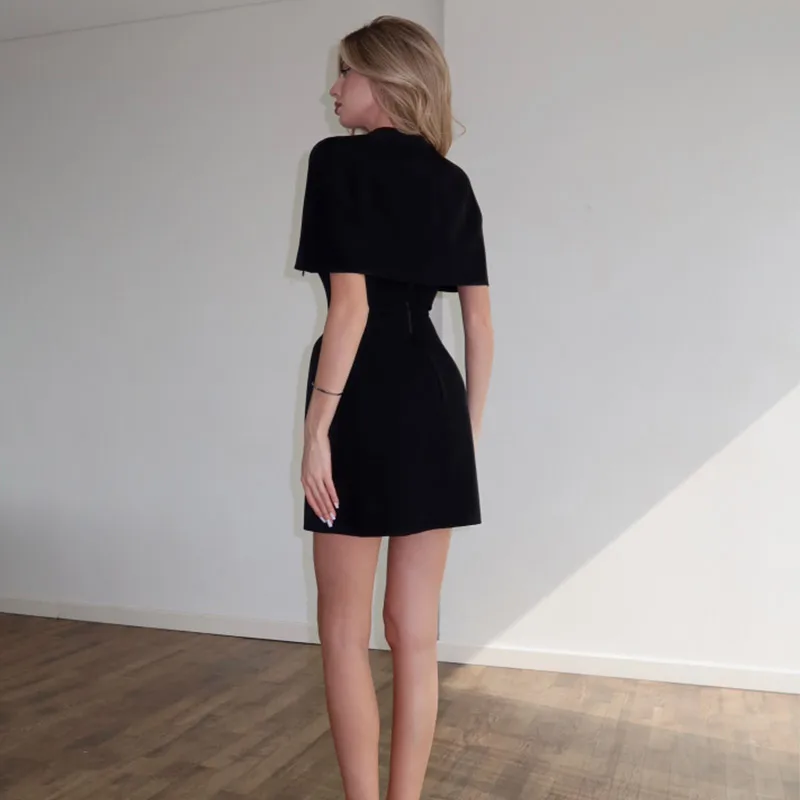 The cape design of this dress is also very beautiful. It looks like it's wrapped in a delicate shawl, and the fabric feels very comfortable to touch. The waist cinching design is very stylish and suitable for many occasions to wear. I really like it