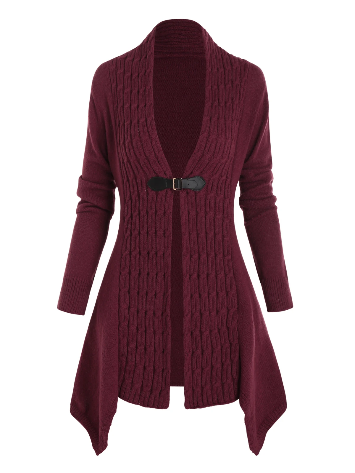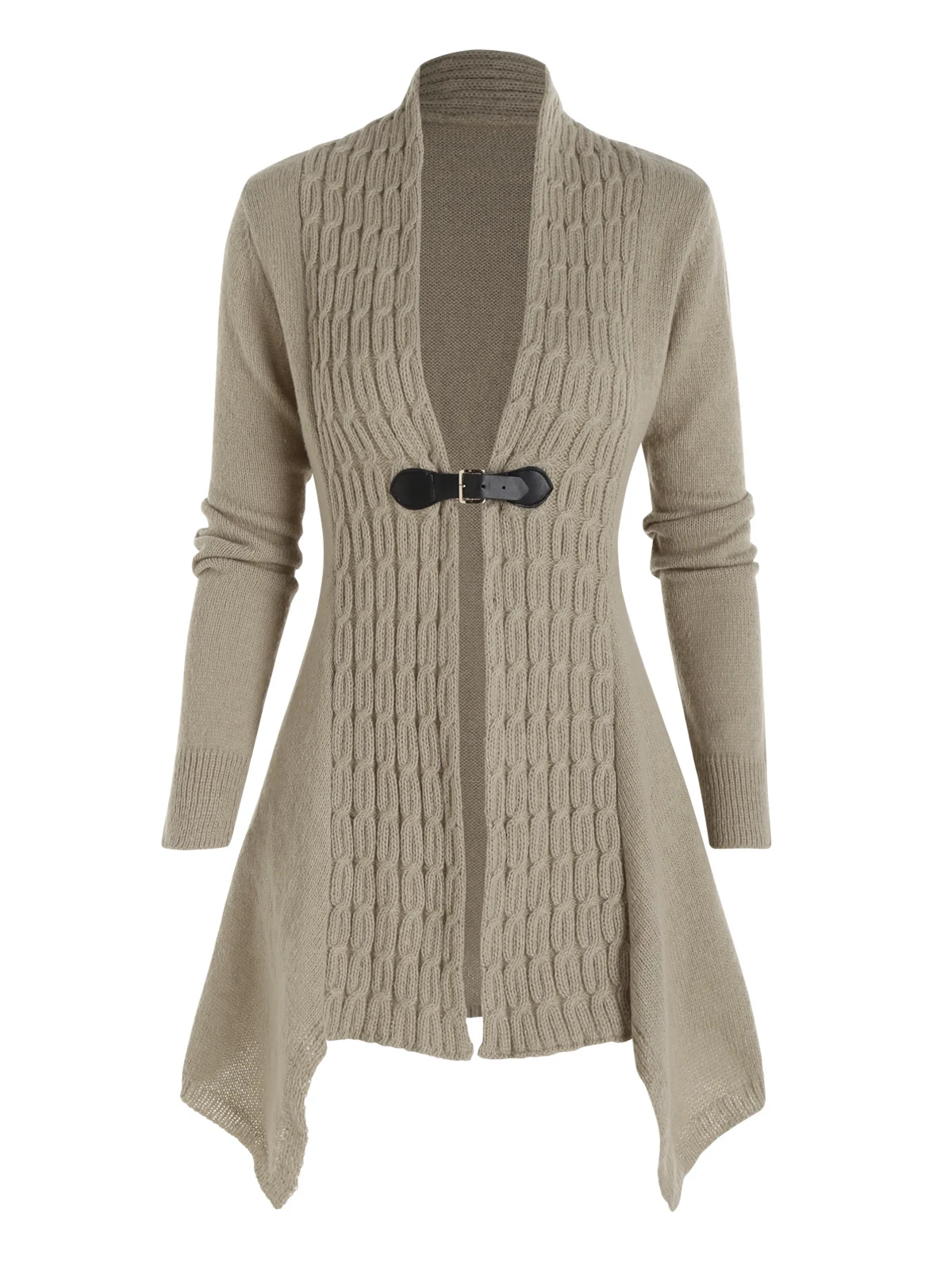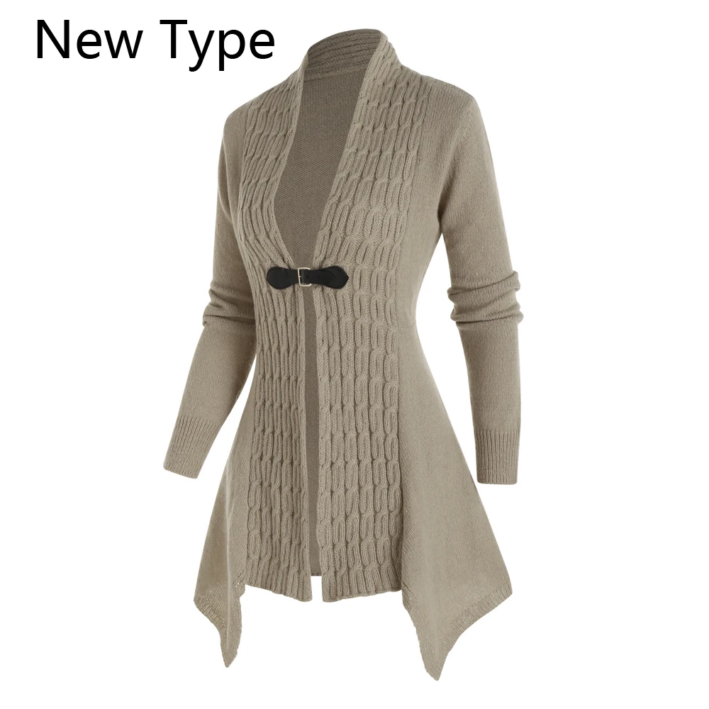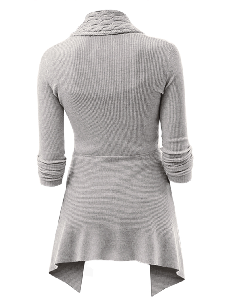Chic Cable Knit Asymmetrical Long Cardigan Stylish V-Neck Sweater for Women Casual Long Sleeve Winter Cardigan JKP7217