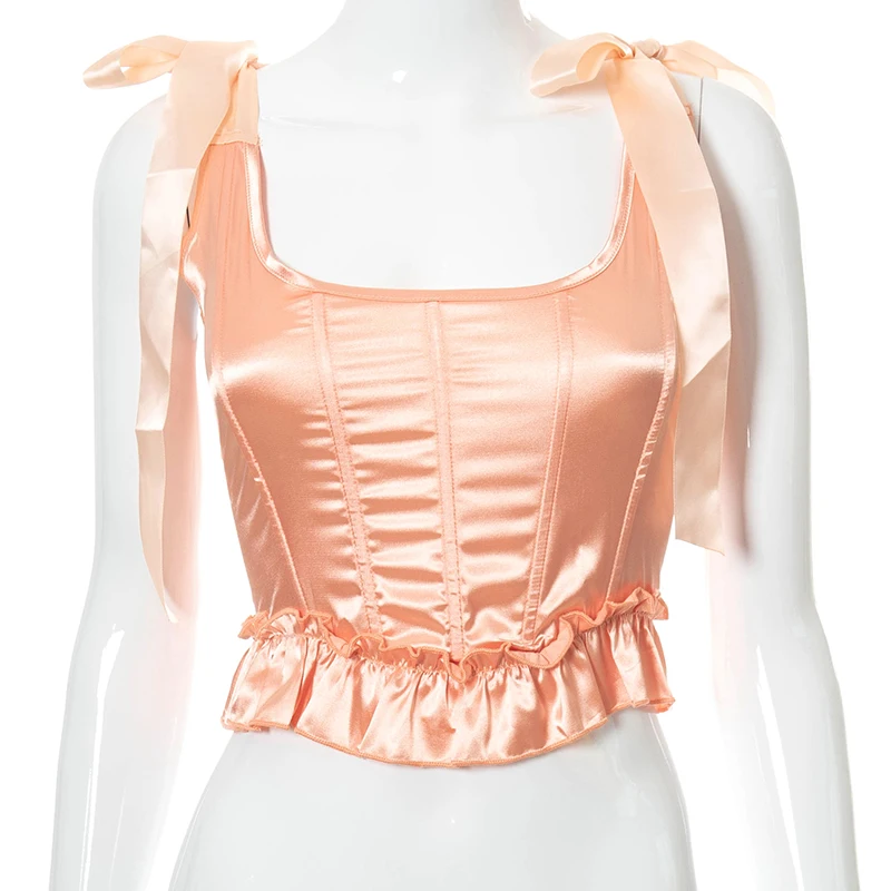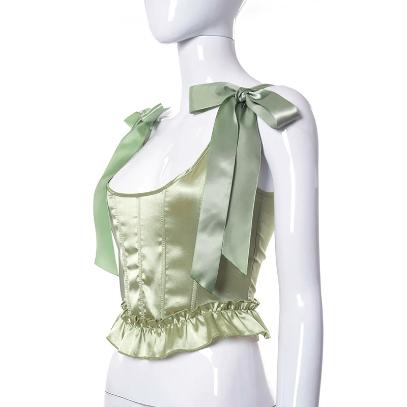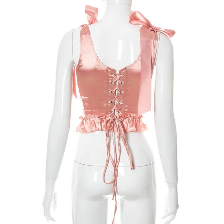 Corset Tops Solid Patchwork Backless Lace Ribbons JKP4712