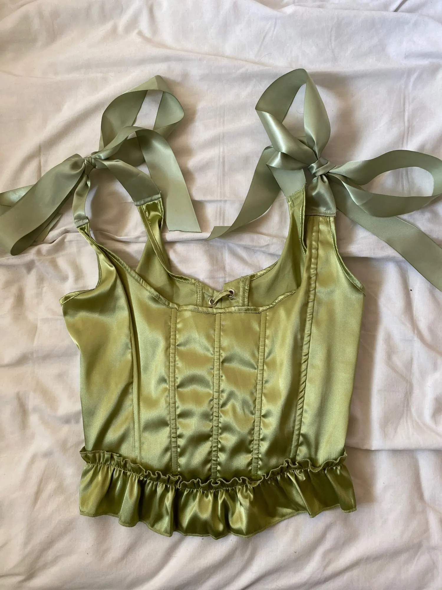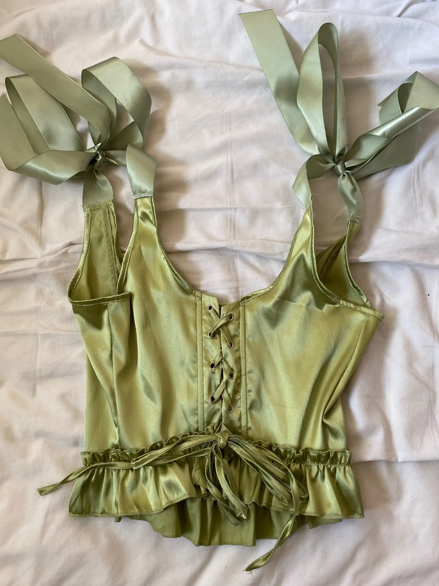 I found this top hard to style but it’s super cute, I took the pictures in Paris, in the palace of Versailles the top fit the vibe. I recommend you get a small if you wanna show off the girls cause it’s adjustable in the back and the ribbons are adjustable too. Order at least two weeks in advance