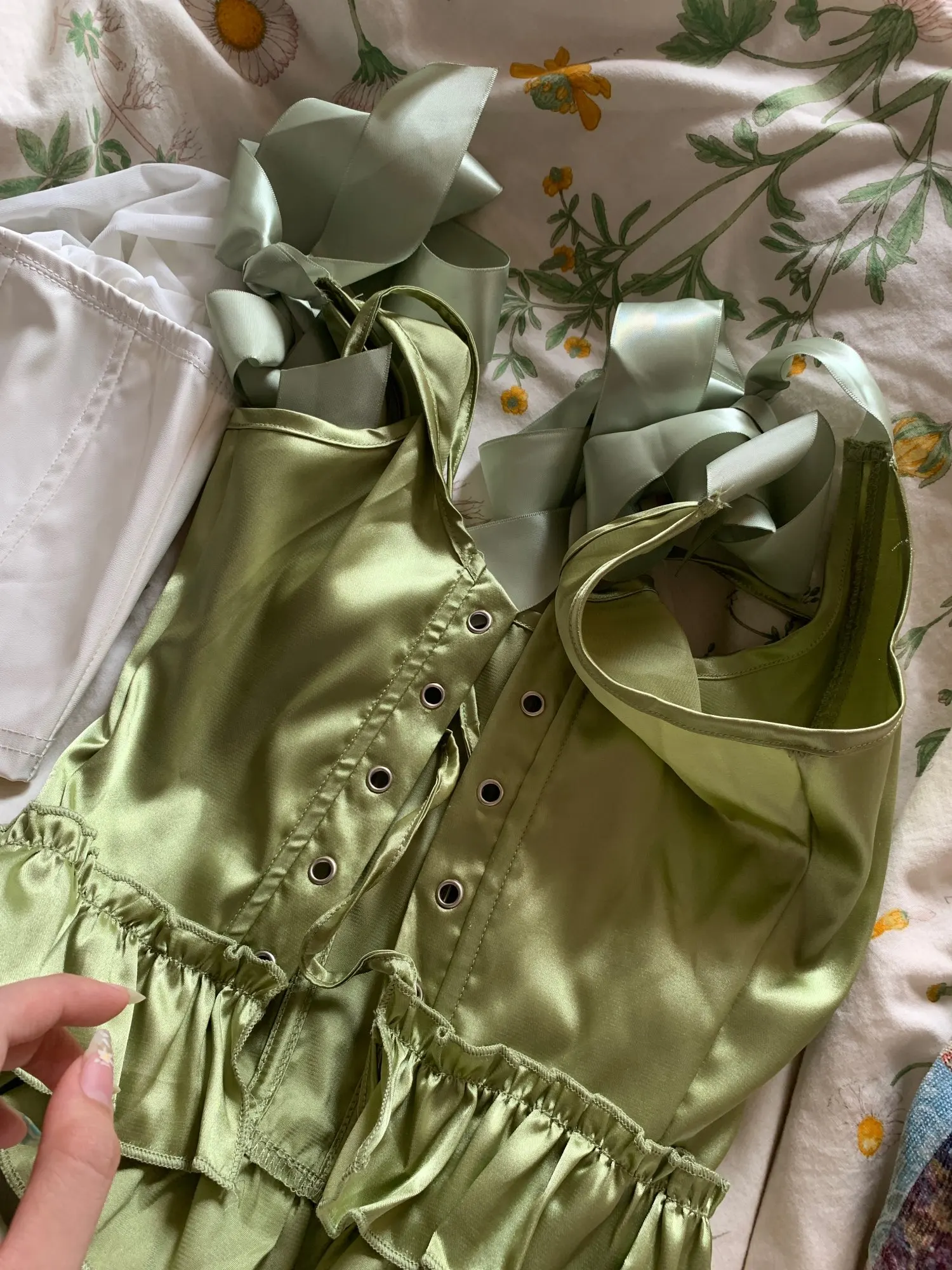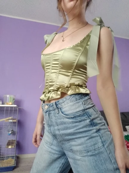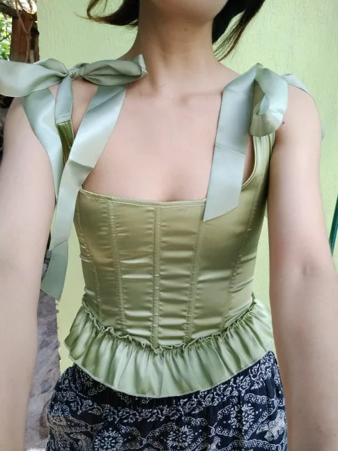 Взяла корсетик чтобы носить поверх платья, в стиле пастушки с картинок :3 качество хорошее для этой цены, он тонкий и можно носить как топ