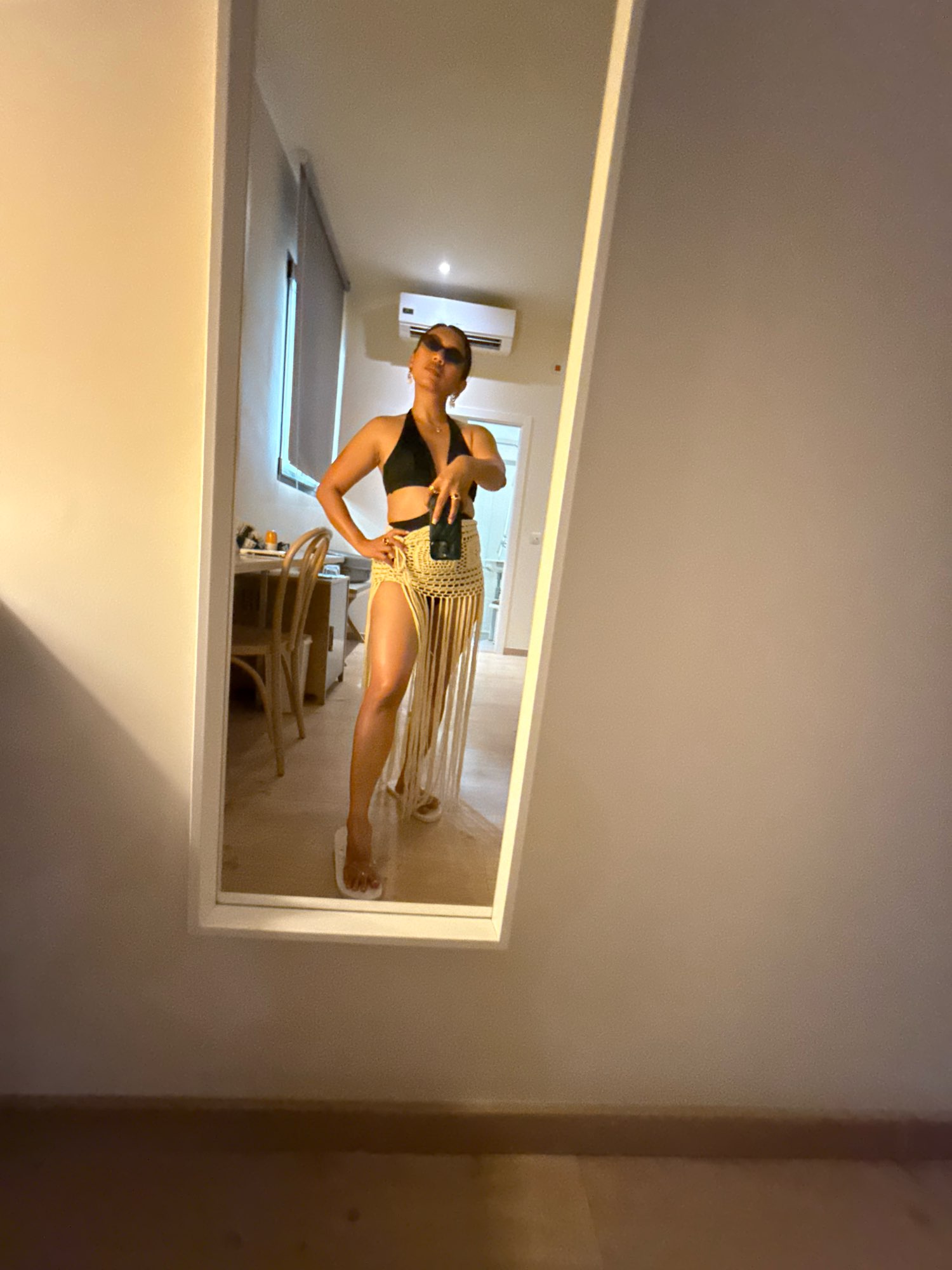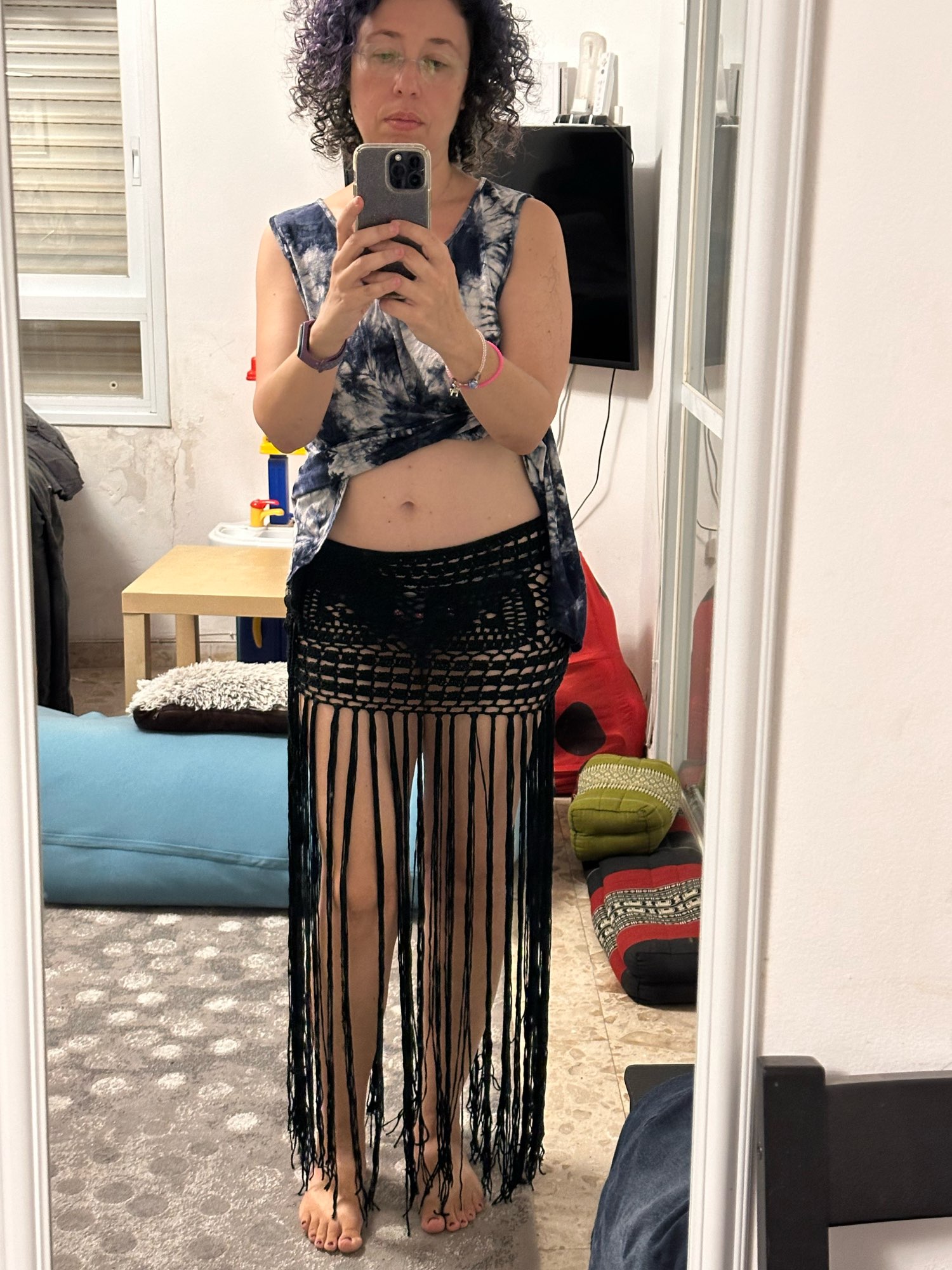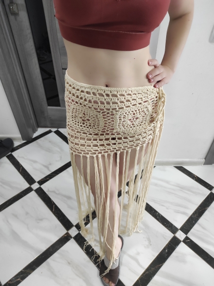 The quality of the skirt is very good, the threads are soft, nice knitting. I would have liked it to be a bit longer, or for the top part to be longer as it barely covers the hips, so it needs to be worn with a low waist.