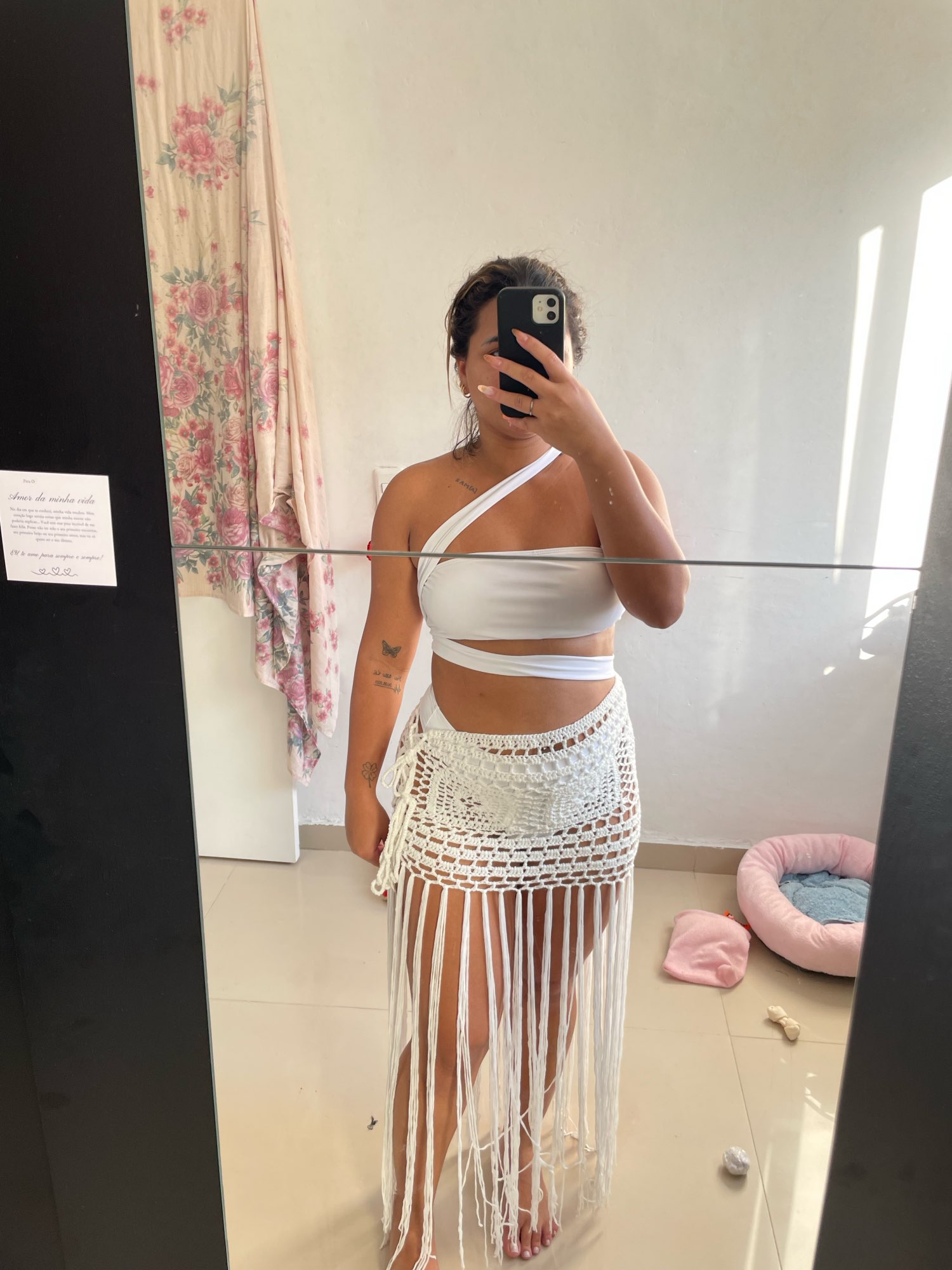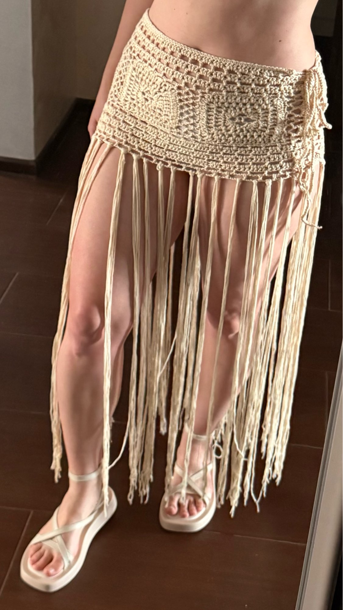Crochet Boho Fringe Beach Skirt with Long Tassels JKP7409