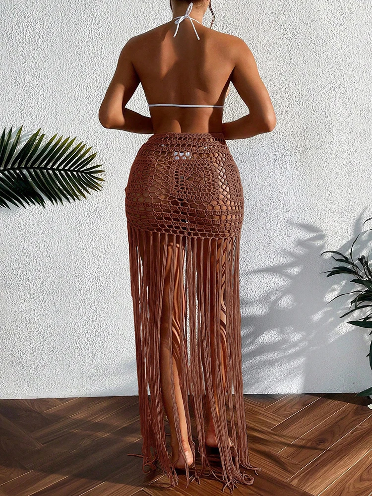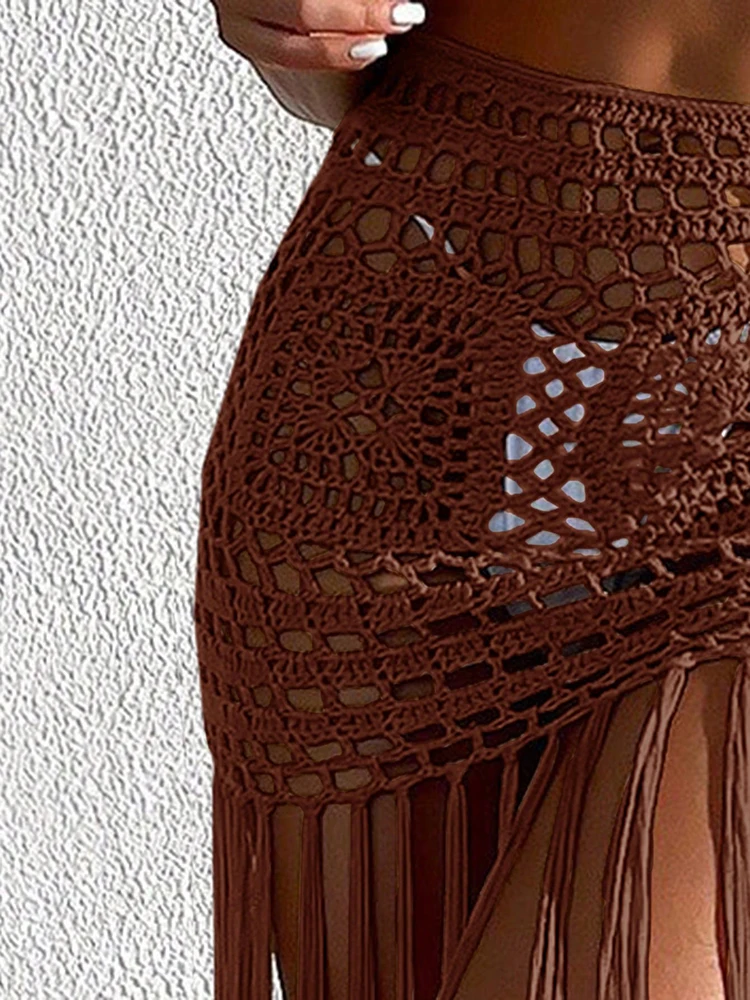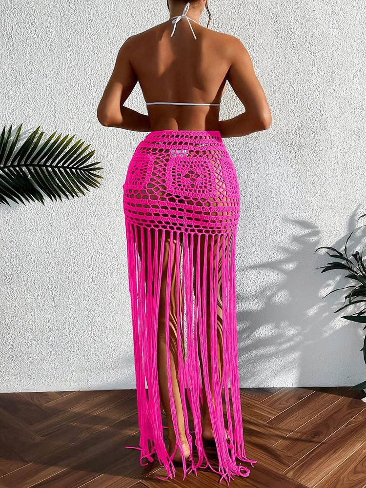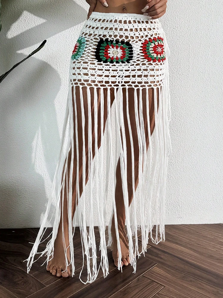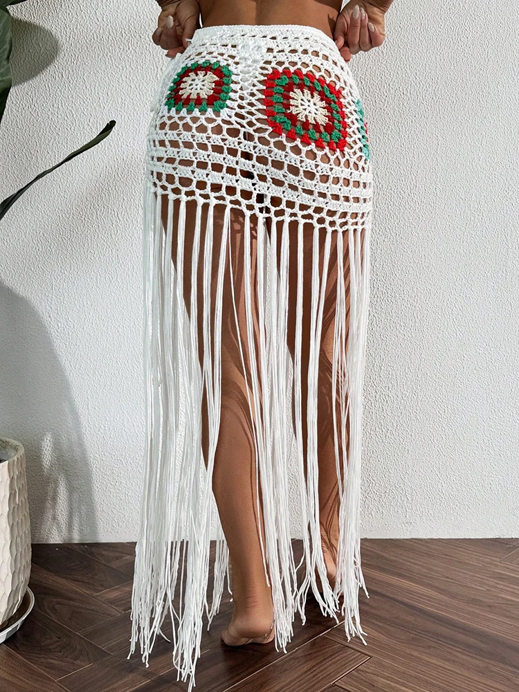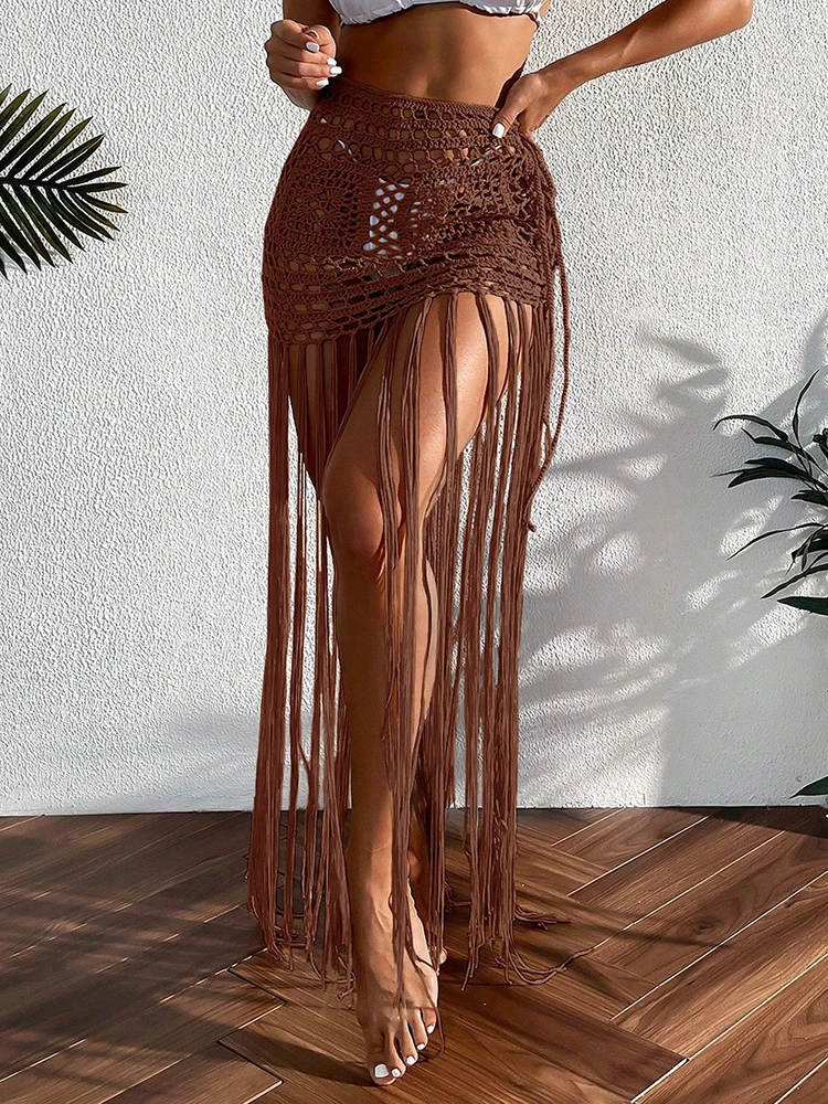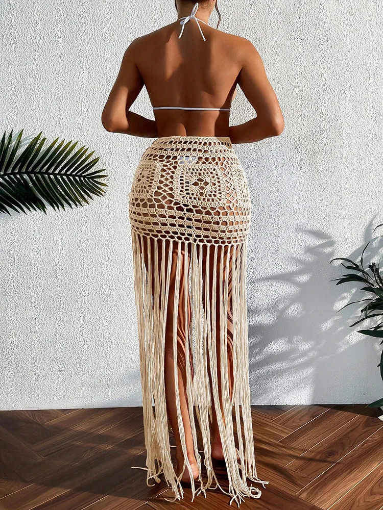 Crochet Boho Fringe Beach Skirt with Long Tassels JKP7409