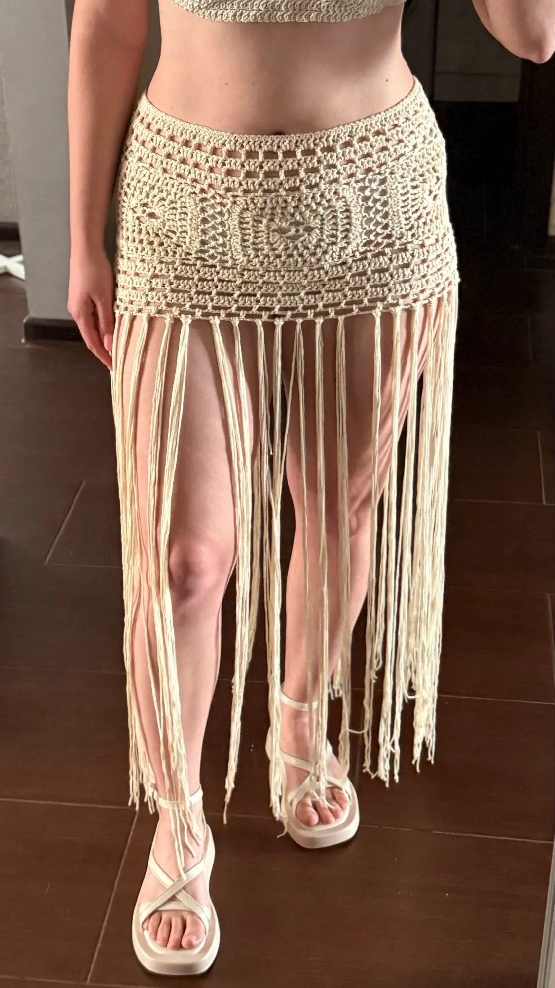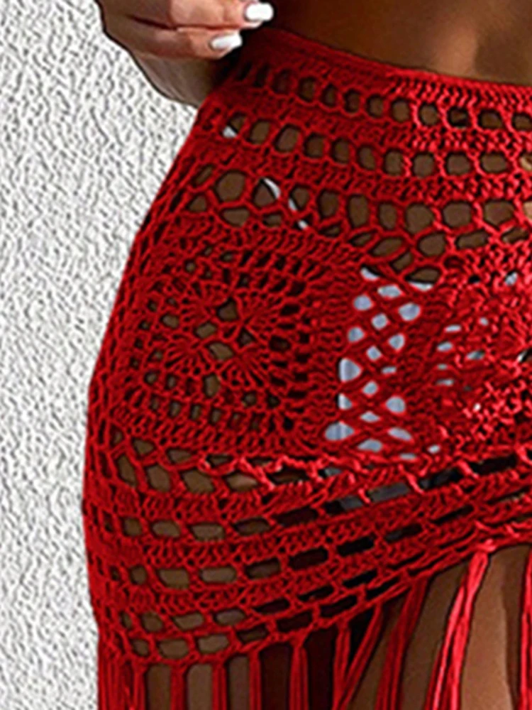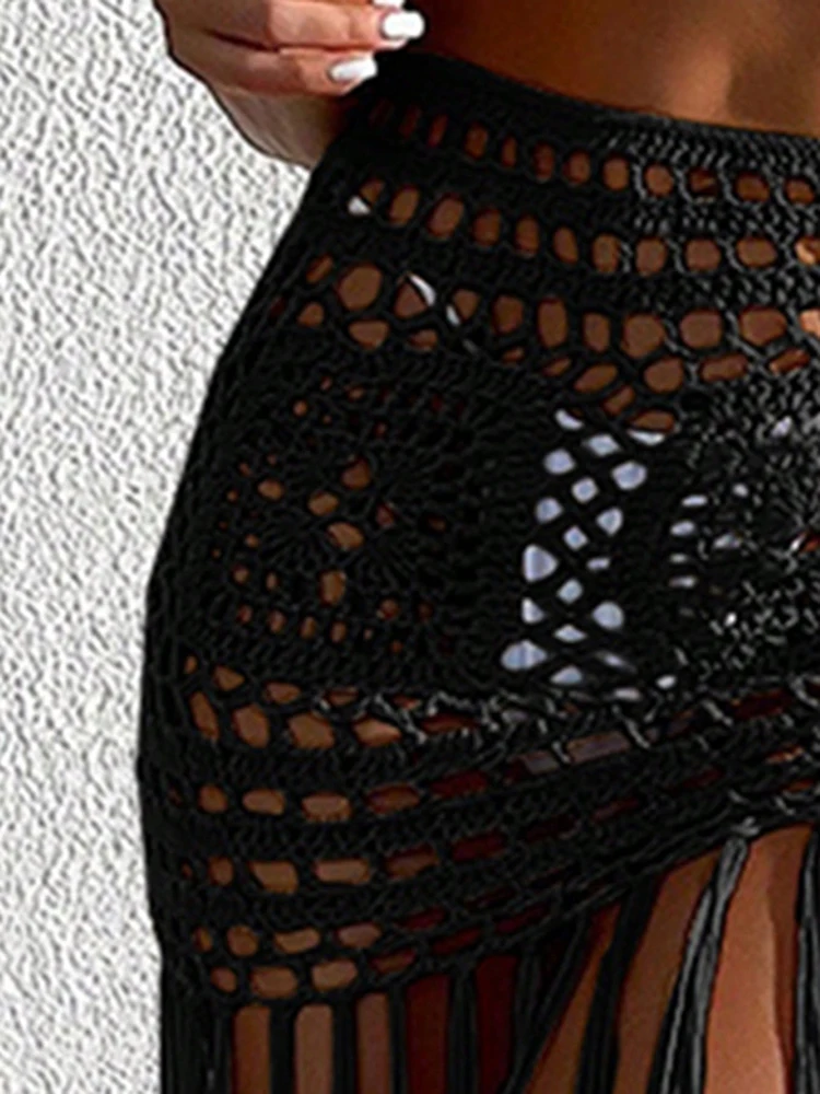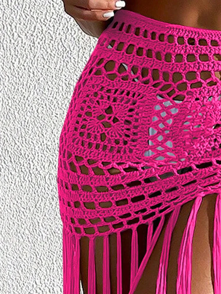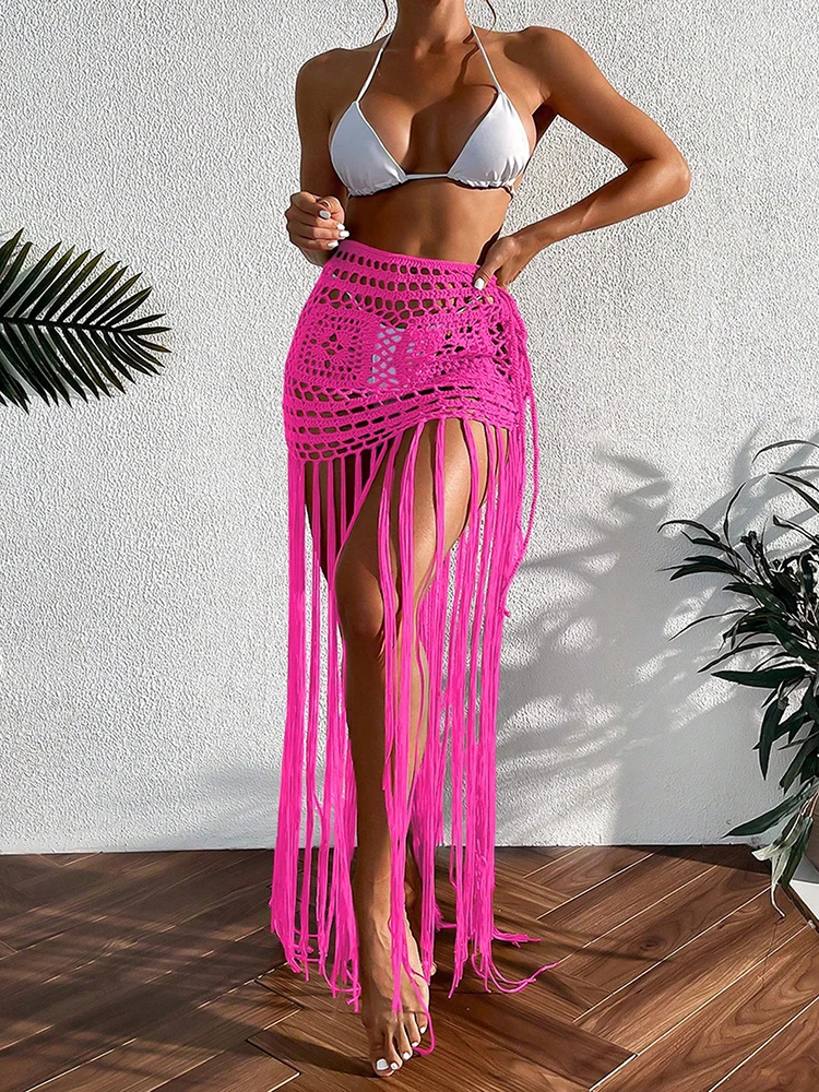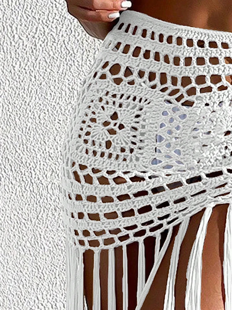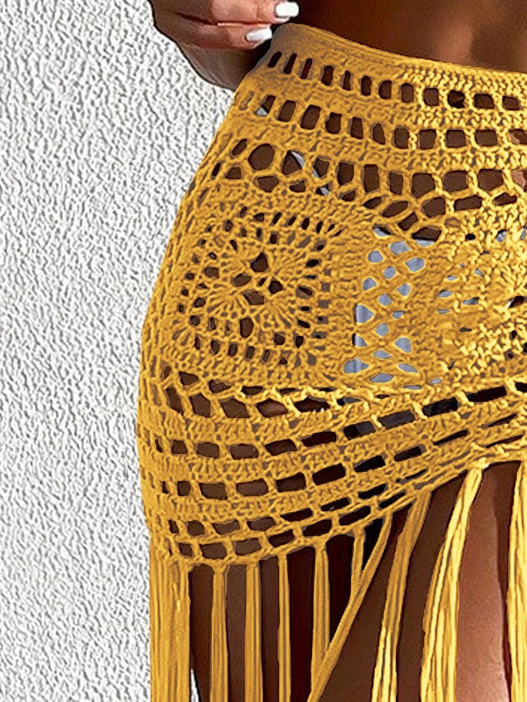 Crochet Boho Fringe Beach Skirt with Long Tassels JKP7409