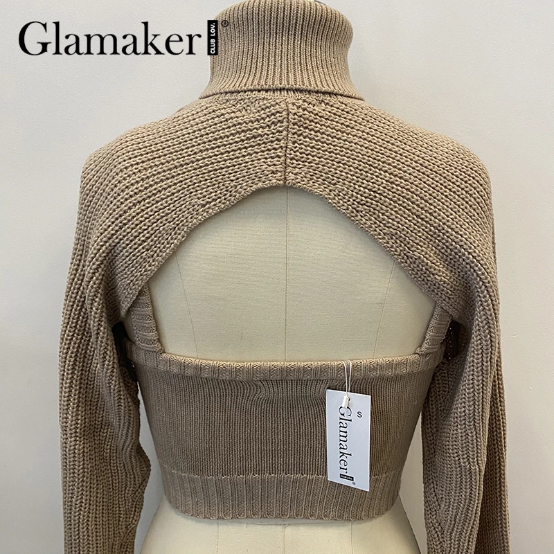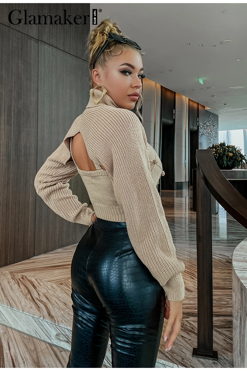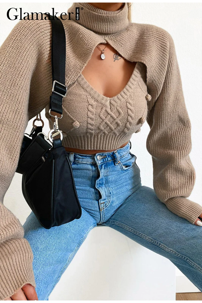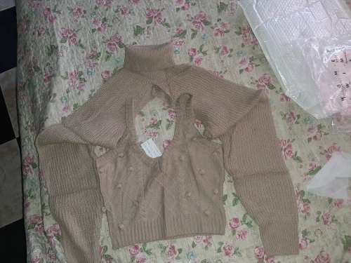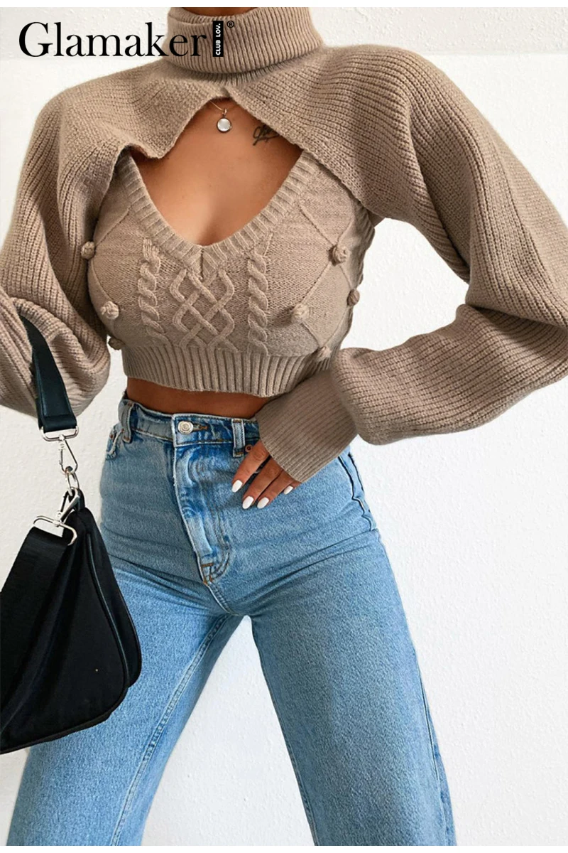 Crop Sweaters Knitted Vest Backless Midriff Hairball 2 Piece Set JKP4810