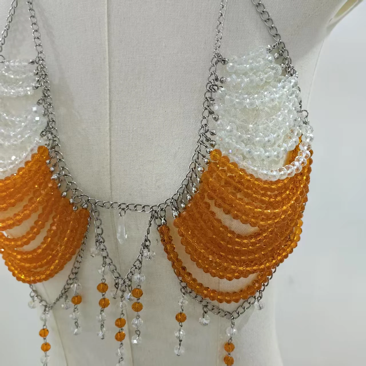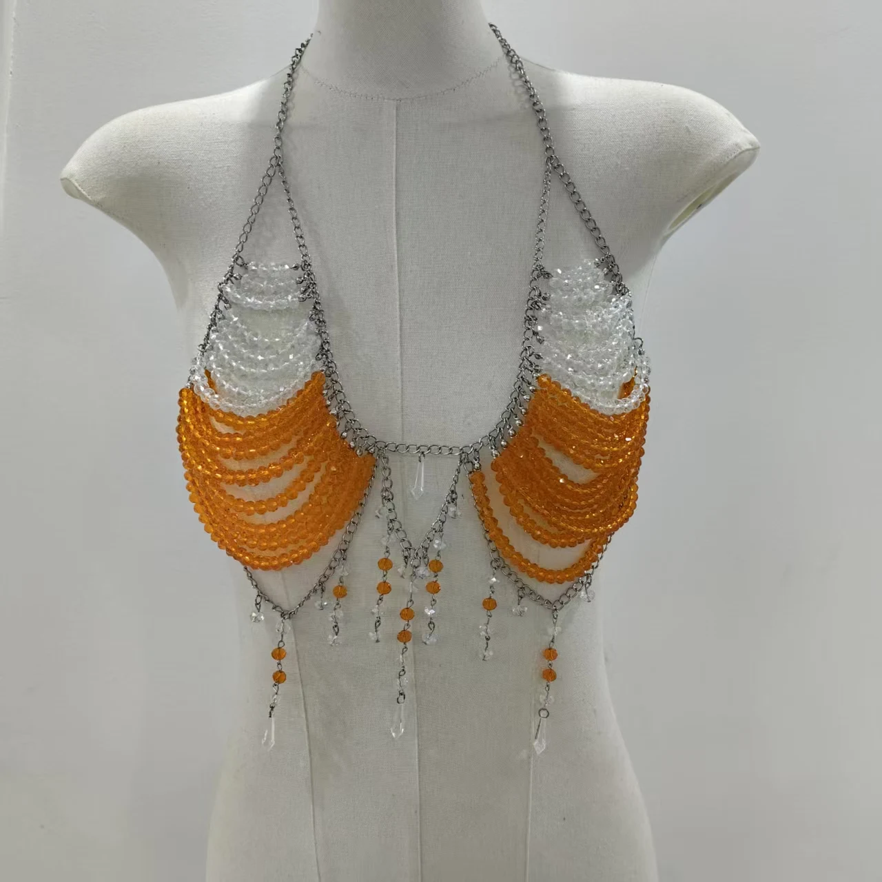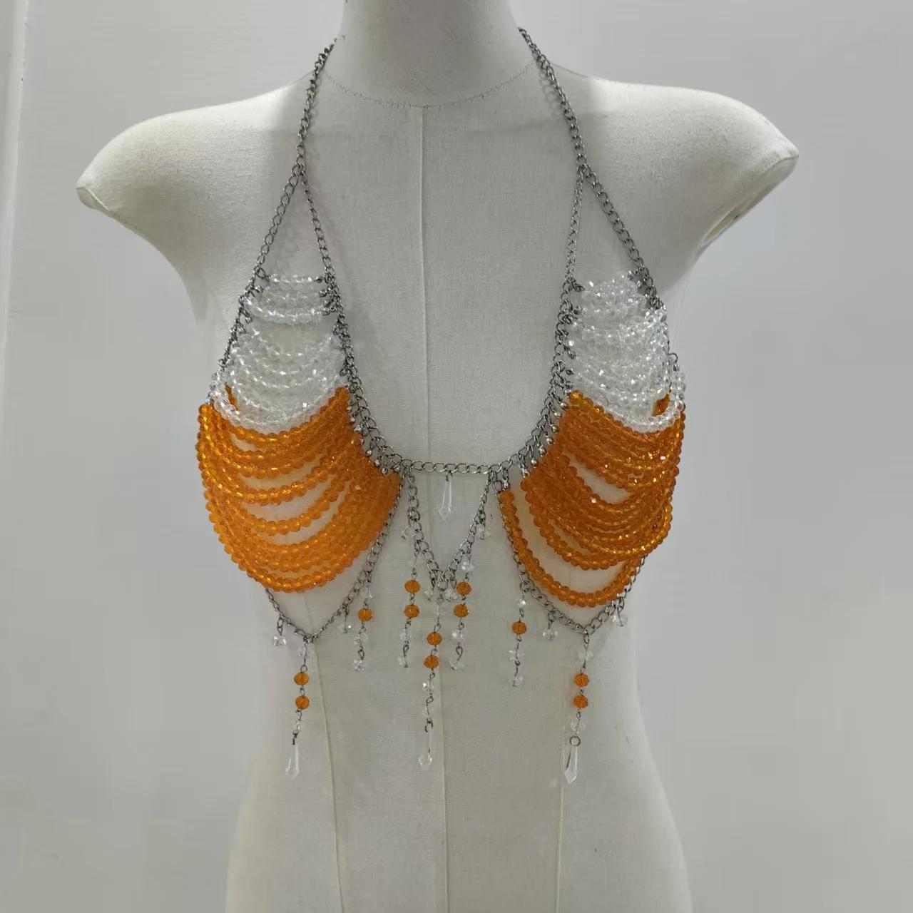 Crystal Beaded Chain Bra Top – Festival Rave Body Jewelry