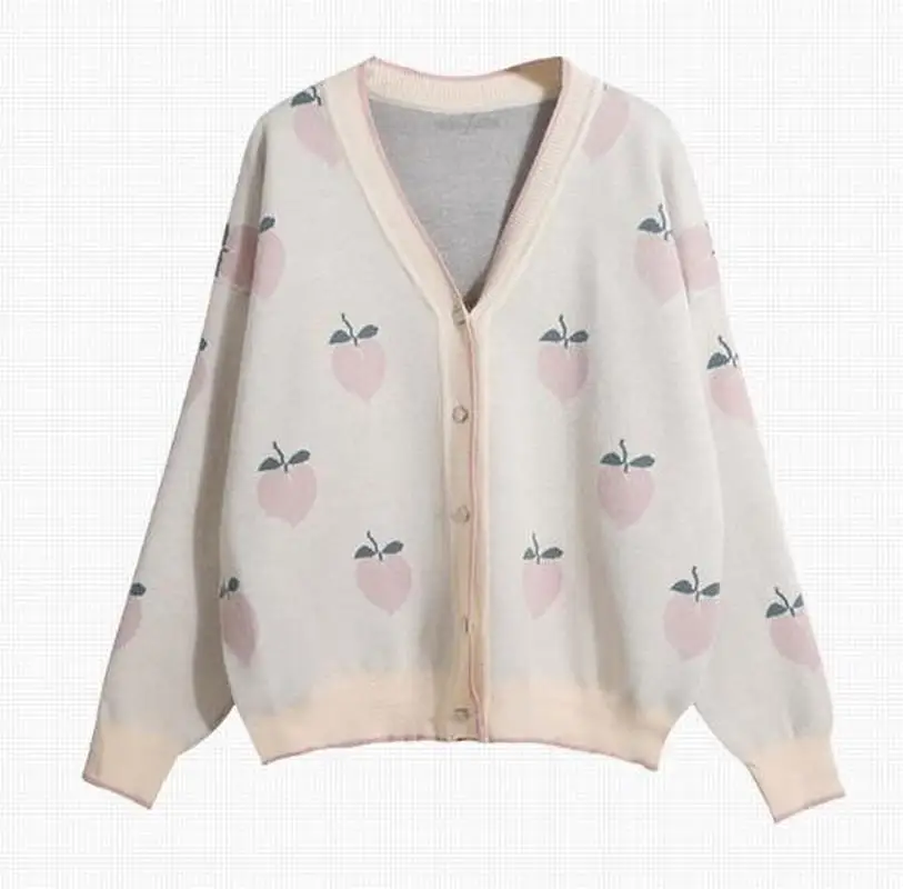 Cute Pink Peach Coat Sweater Cardigan Knitted Oversized Jacket Korean Autumn Long Sleeve Pull Femme
