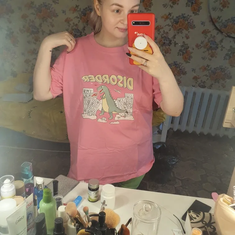 Преккрасный материал, как на фото, до Челябинска пришло за 2,5 недели, брала размер хl чтобы оверсайз была футболка, все подошло( на обычный м)