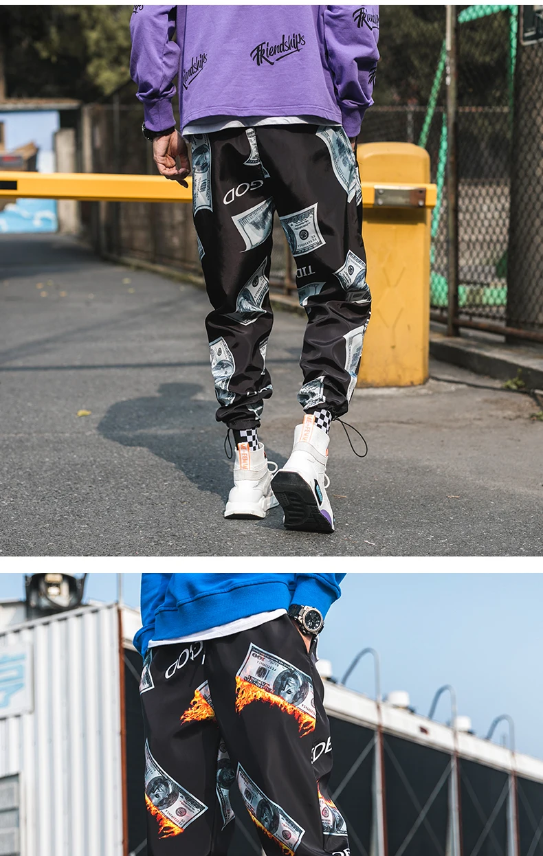 Dollar Printed Men Harem Pants Hip Hop Casual Streetwear Money Letters Print Street Fashion Outfitters JKP3810